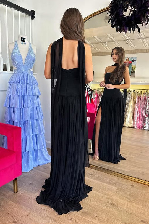Chiffon A-Line Strapless Backless Party Prom Dress With Split