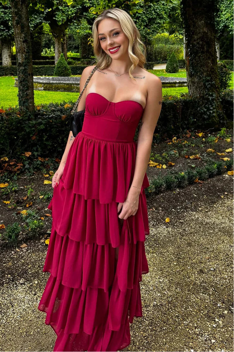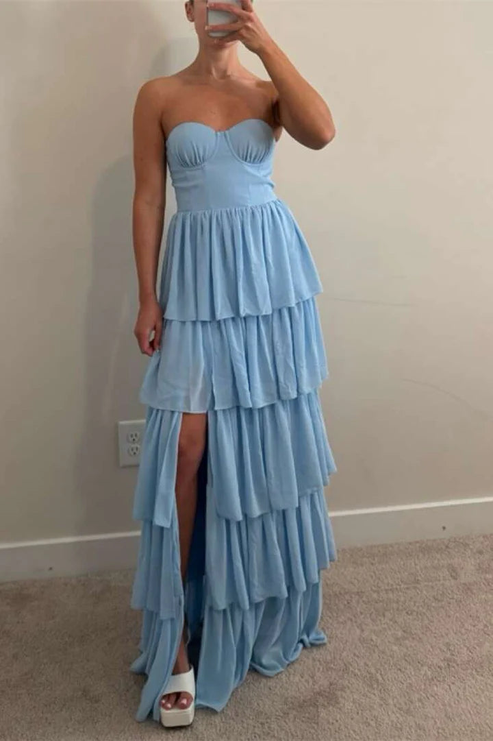 Sweetheart Strapless Tiered A-Line Chiffon Party Prom Dress