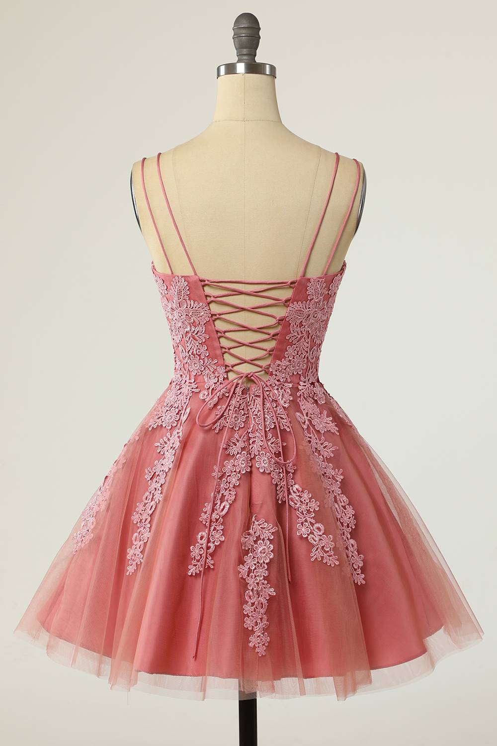 A-Line Double Straps Short Homecoming Dress with Appliques