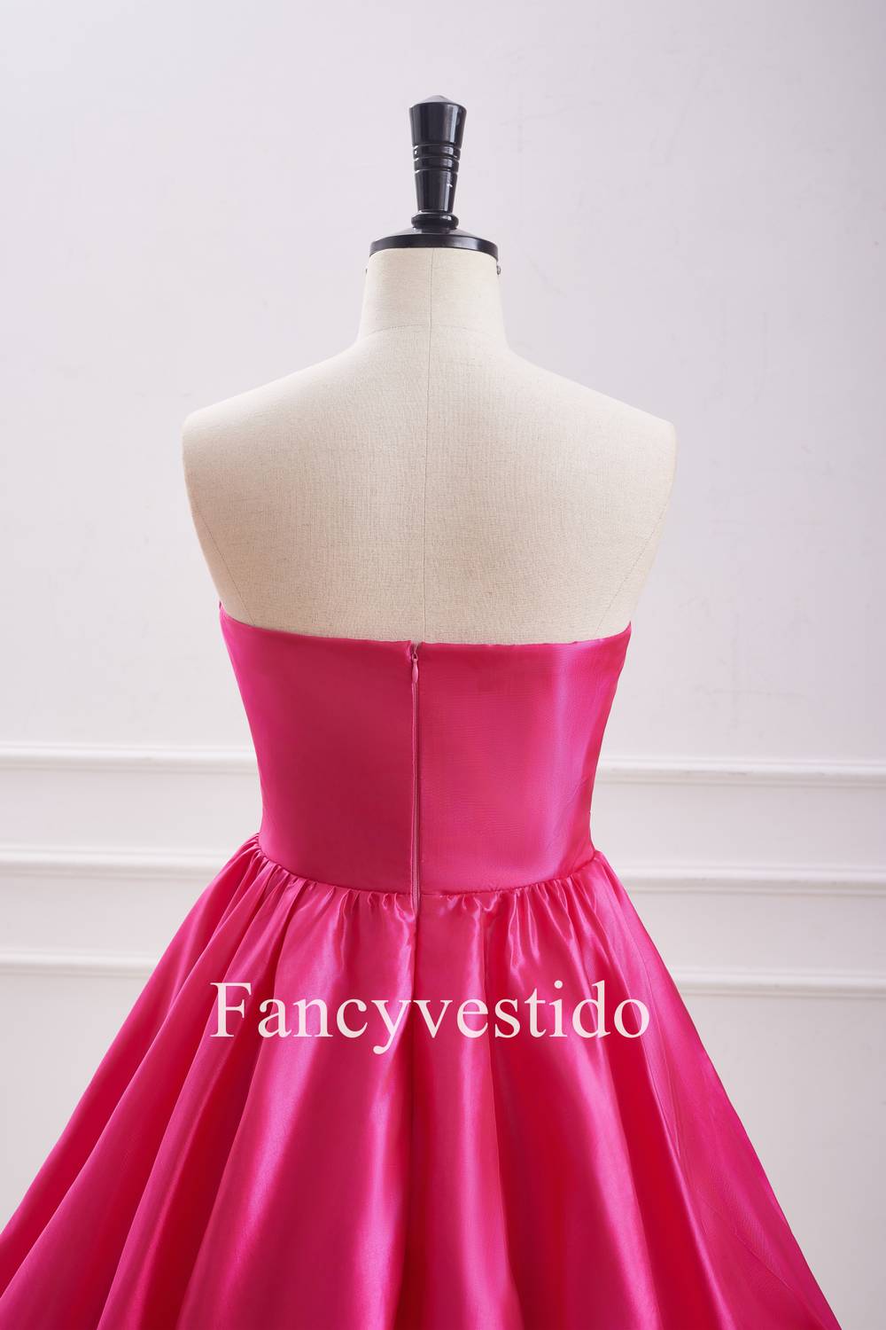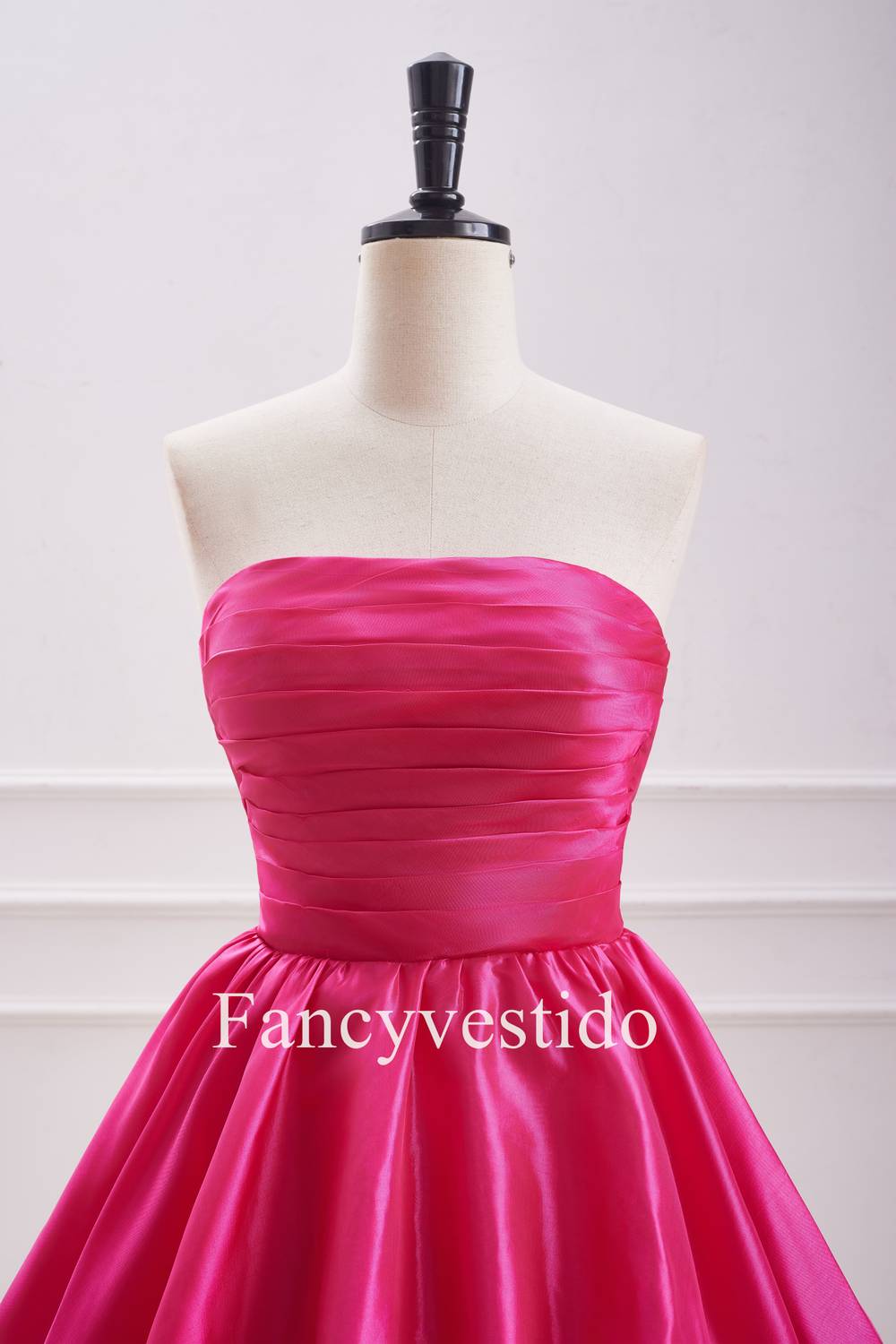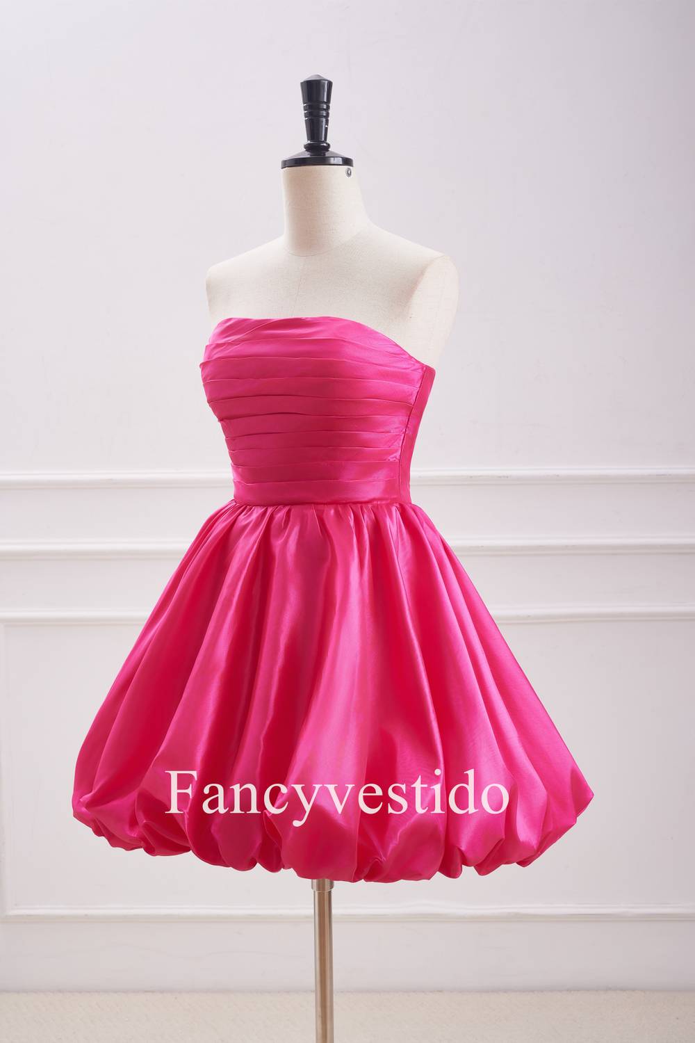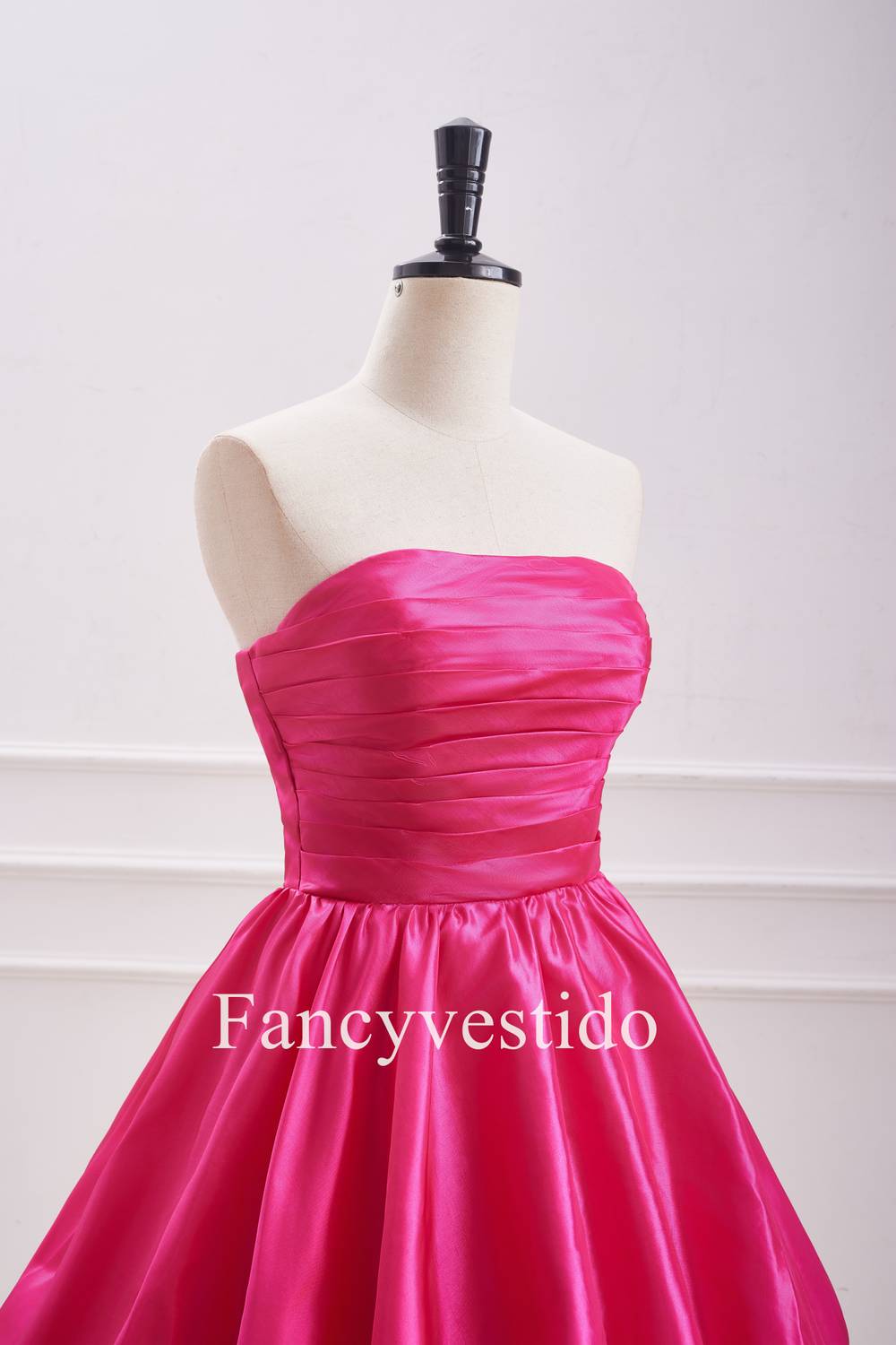 A-Line Strapless Fuchsia Pleated Short Party Dress