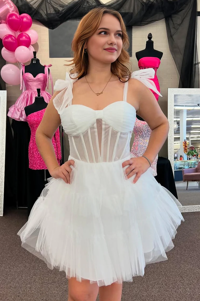 Bow Tie Straps Corset A-Line Ruffle Homecoming Dress