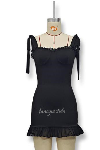 Bow Tie Straps Tight Short Summer Dress with Ruffle Hem