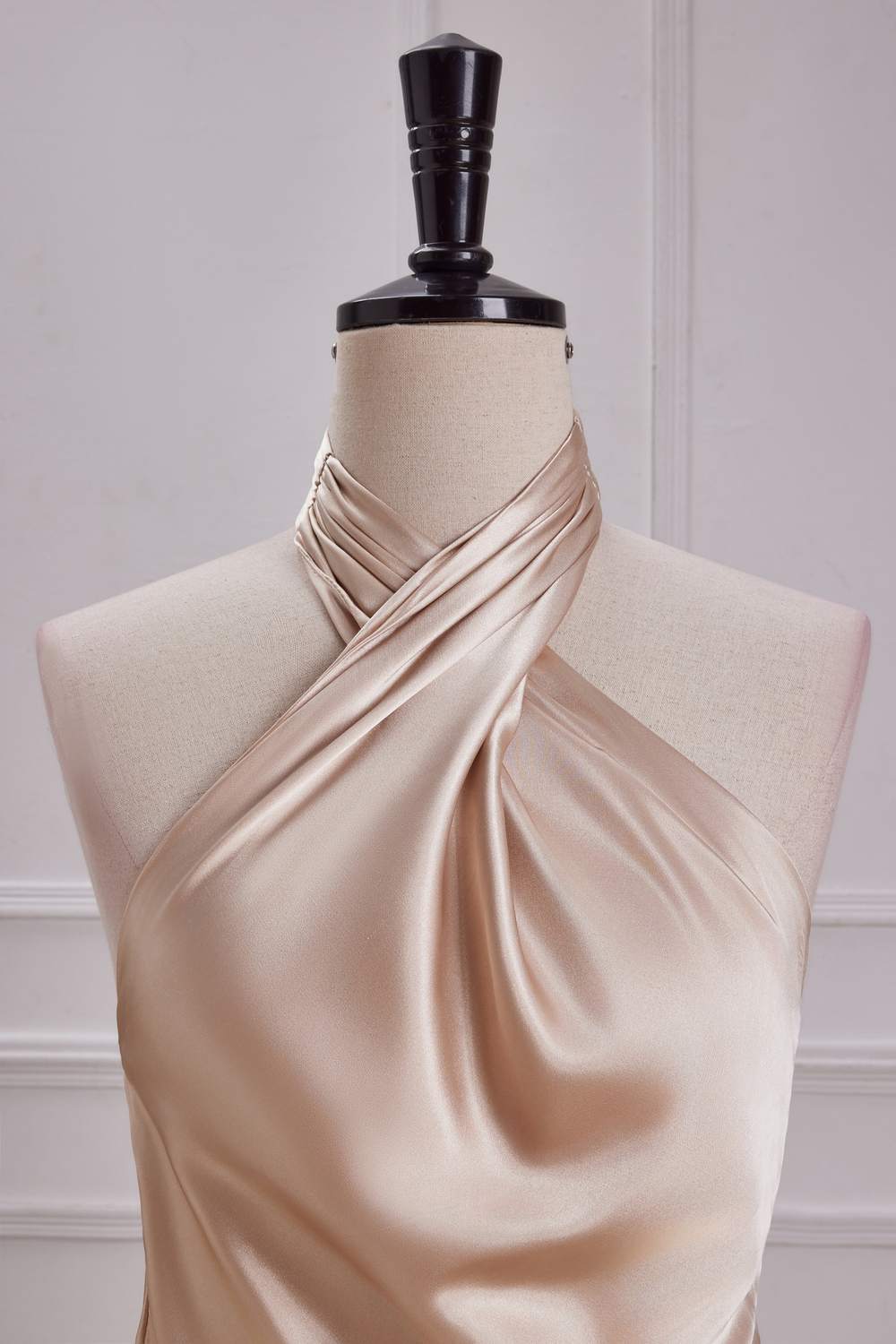 Champagne Crossed Halter Mermaid Bridesmaid Dress