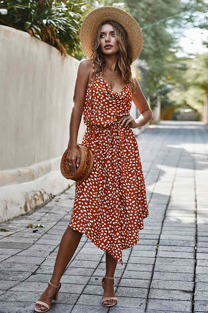 Spaghetti Straps Cowl Neck Tea-Length Champagne Bridesmaid Dress
