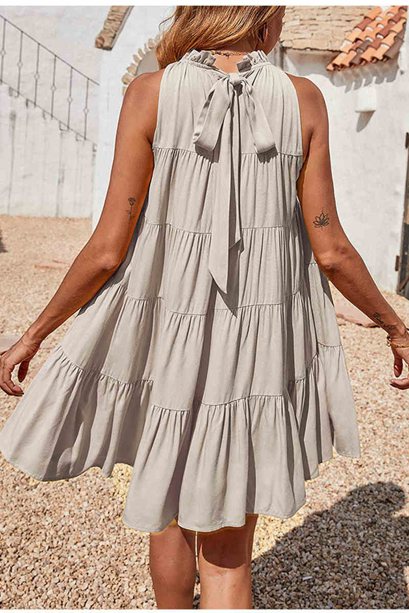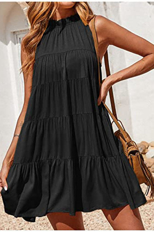 Crew Neck Yellow Ruffle Summer Dress