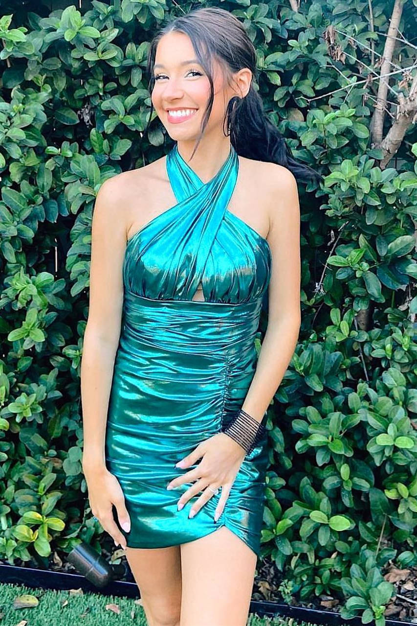 Cross Halter Fuchsia Pleated Bodycon Homecoming Dress