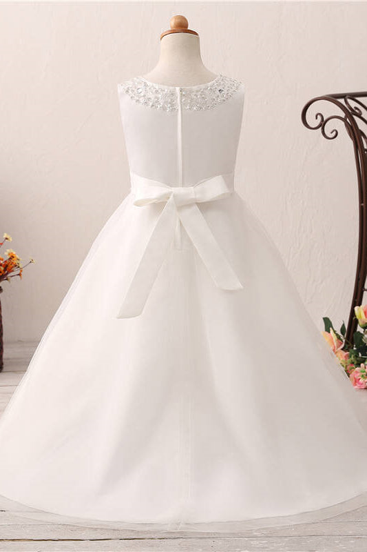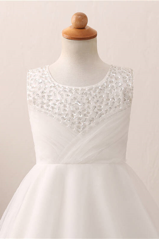 Cute Toddler Sequined White Flower Girl Dress with Bow Knot
