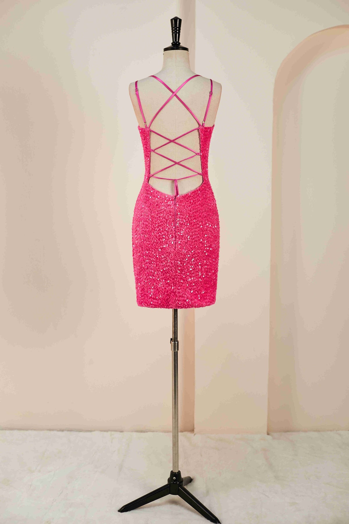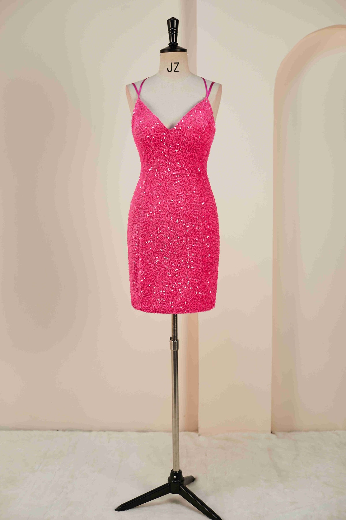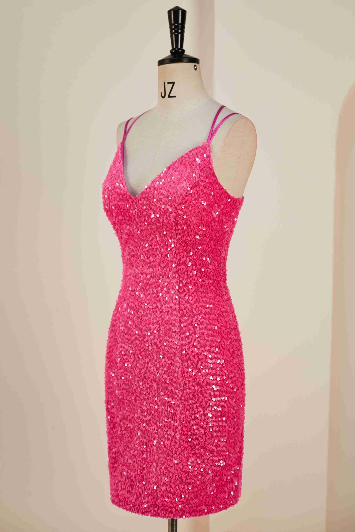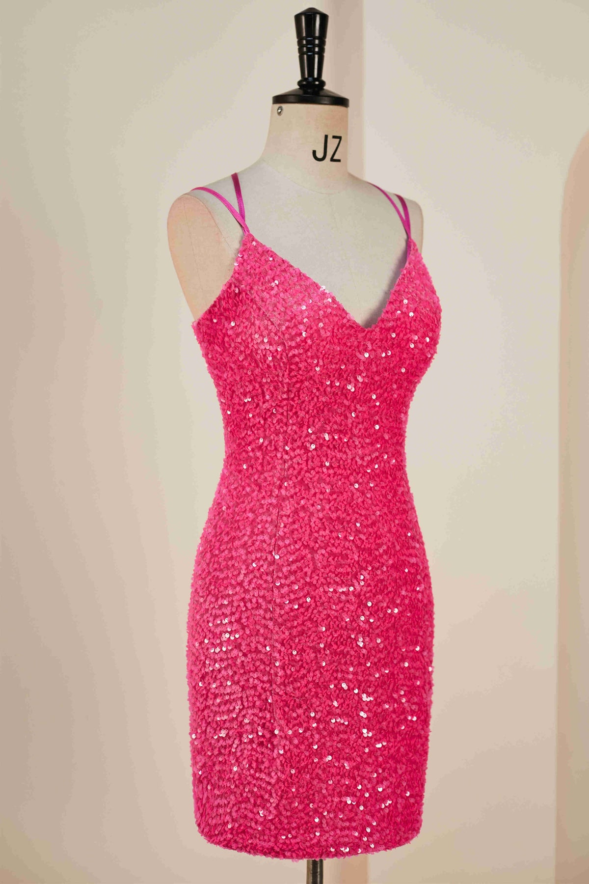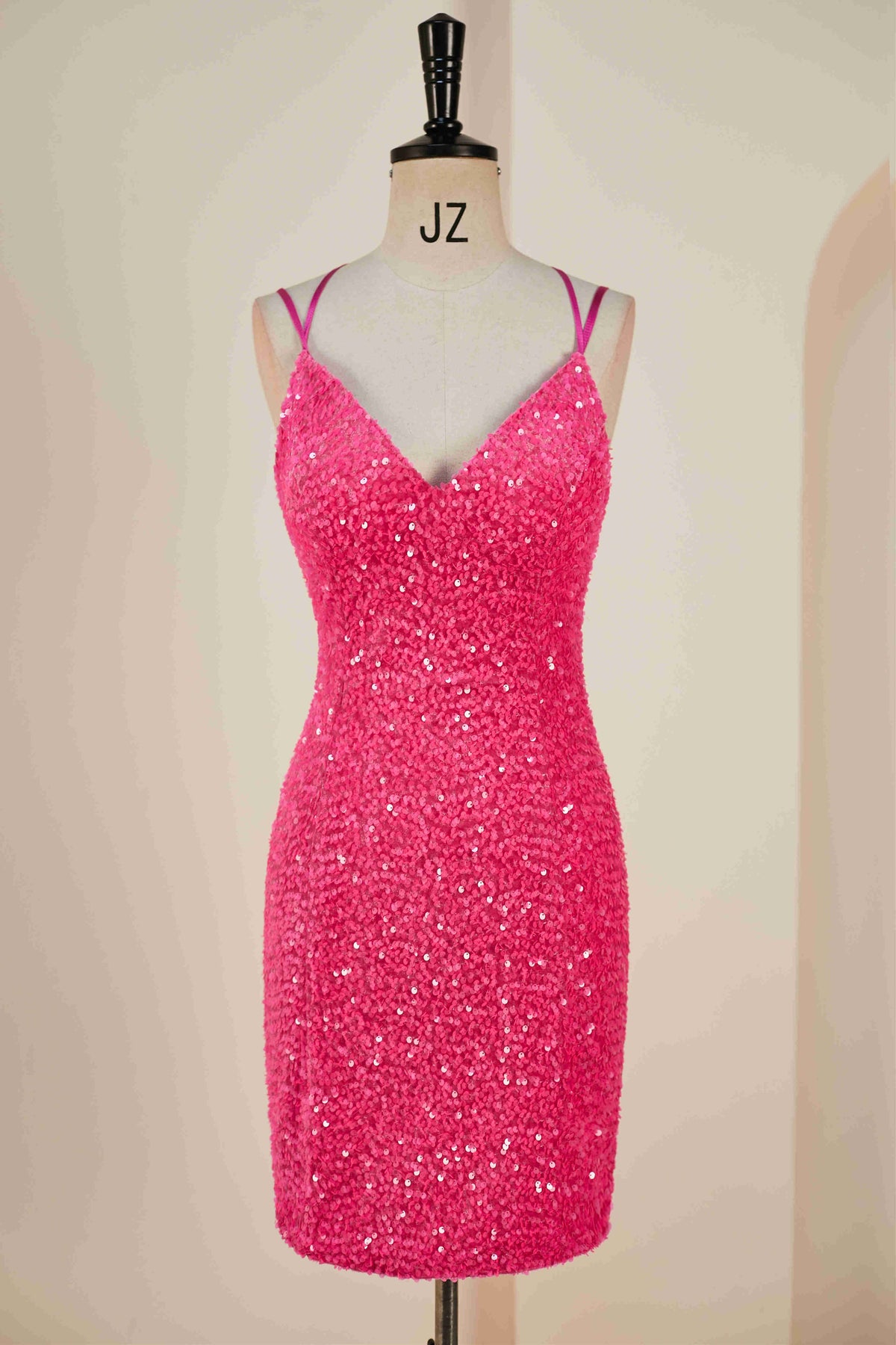 Double Straps Hot Pink Sequin Bodycon Homecoming Dress