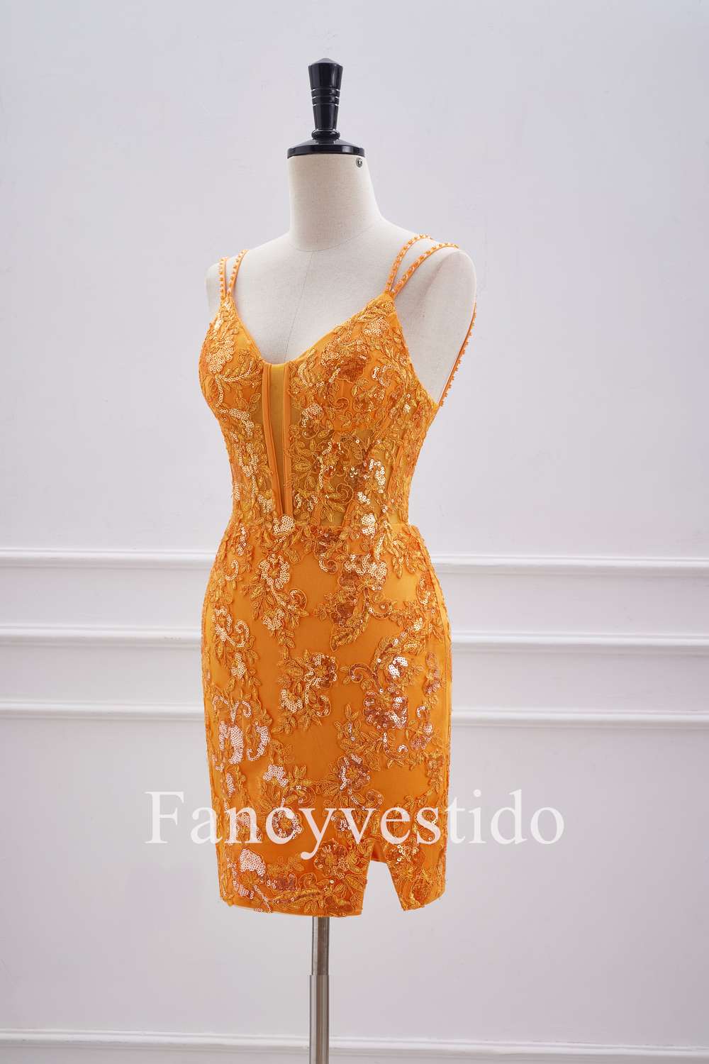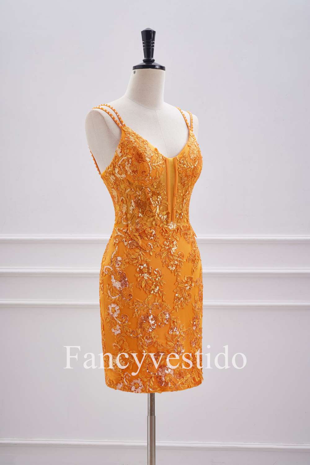 Double Straps Orange Sequin Appliques Short Homecoming Dress