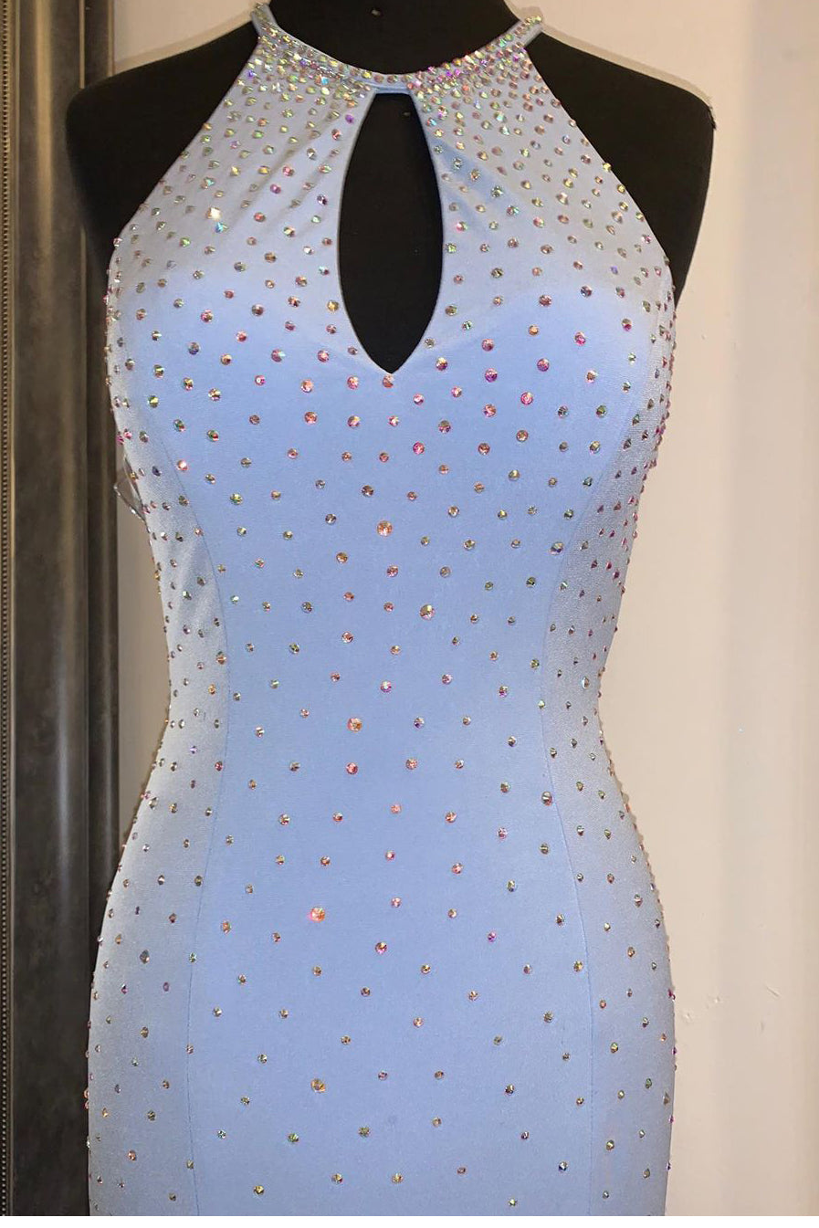 Elegant Halter Mermaid Beaded Long Prom Dress