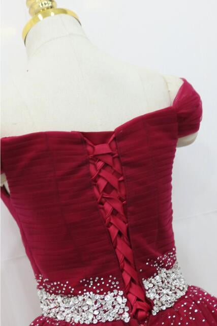 This elegant a-line burgundy long prom dress features off the shoulder neckline and sequins.Our dresses have a good quality, but Inexpensive.