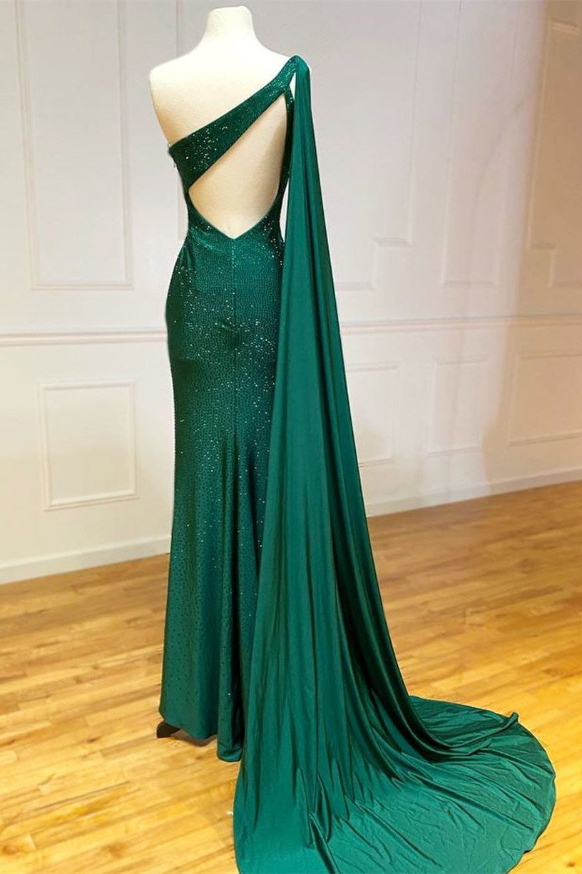 Elegant One Shoulder Emerald Green Long Prom Dress with Shawl