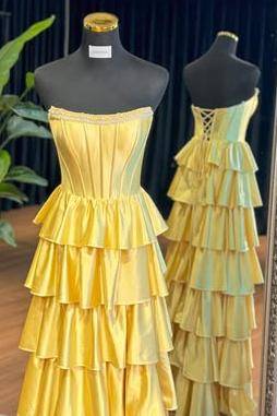 Elegant Strapless A-Line Ruffle Prom Dress with Slit