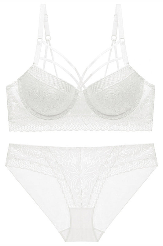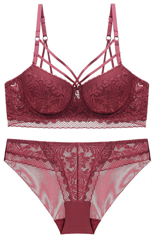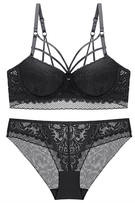Elegant Straps Navy Blue Lace Lingerie Set