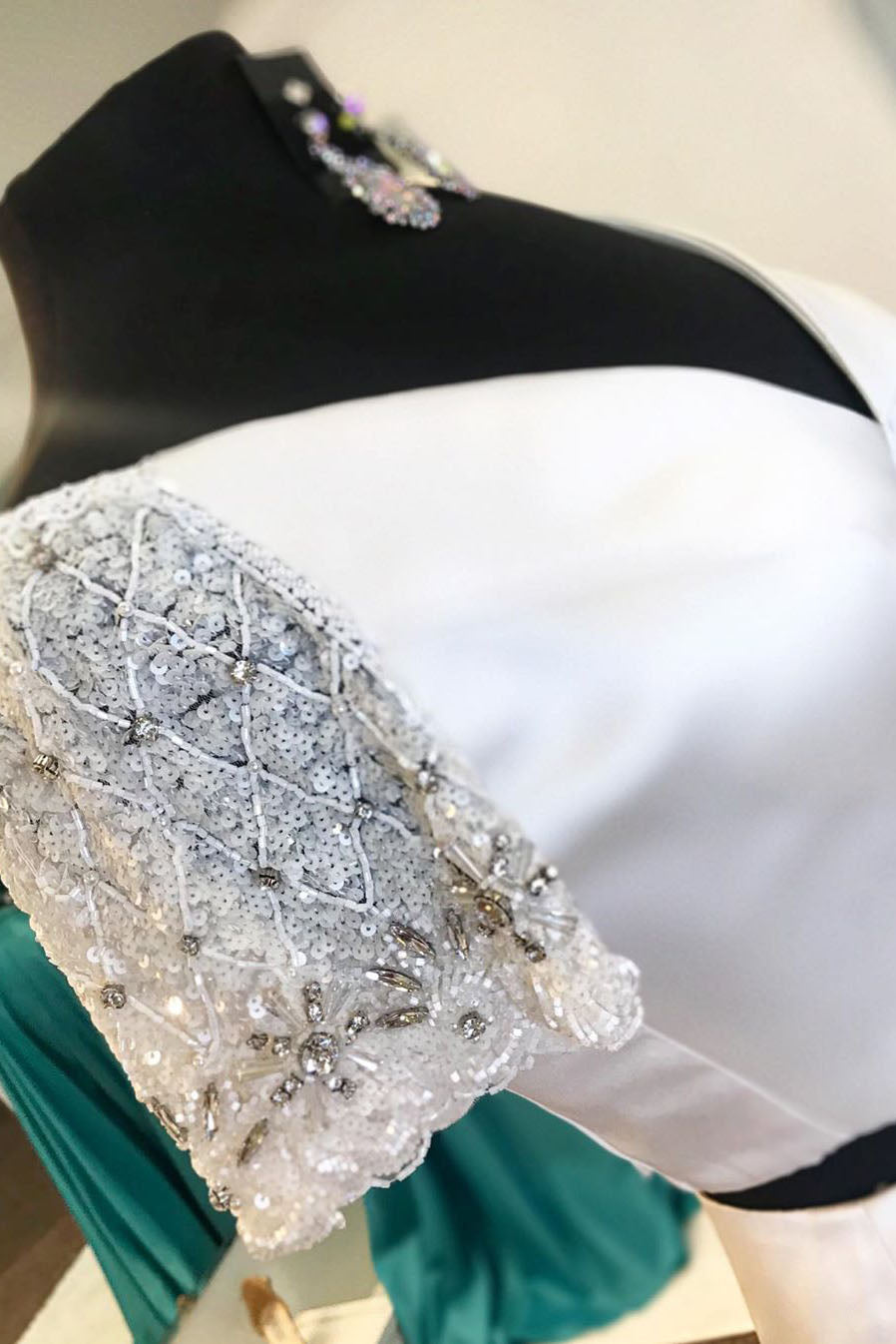 Two Piece Mermaid White Long Prom Dress with Short Sequin Sleeves