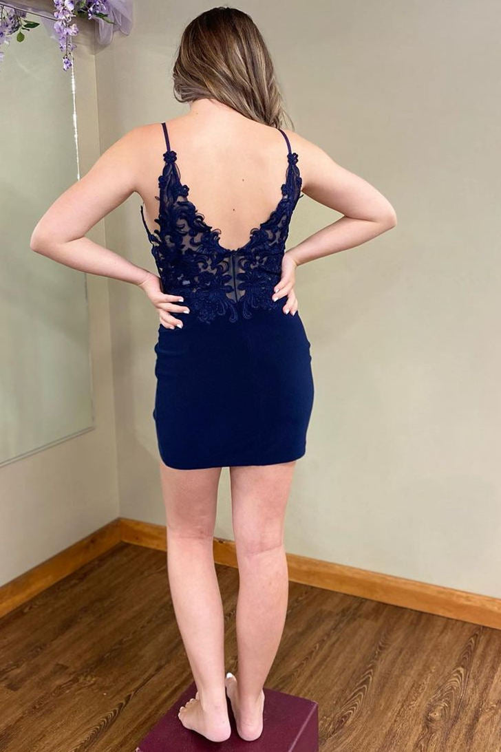 Fitted Lace Navy Blue Short Homecoming Dress
