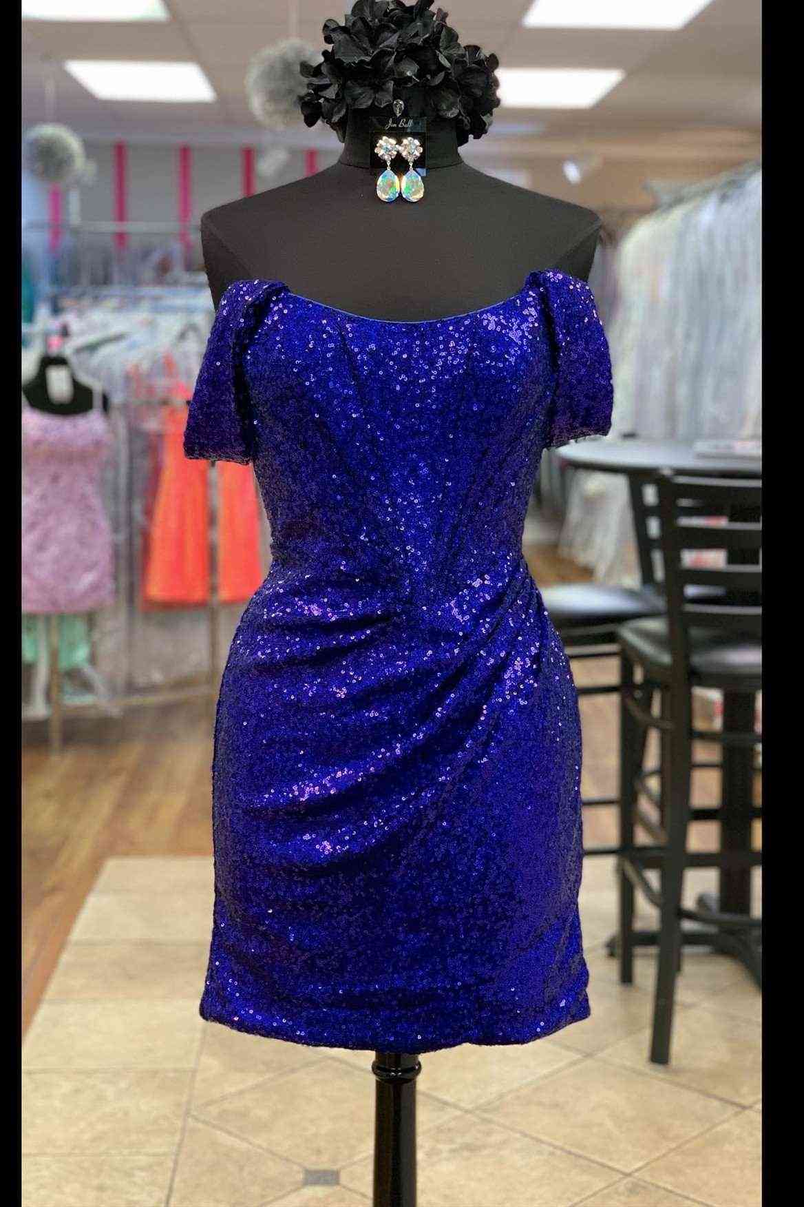 Fancyvestido this short tight fuchsia homecoming dress features off the shoulder neckline, sequins bodice and zipper back. Shiny and sweet, this mini homecoming dress is an all-around fashion win.
