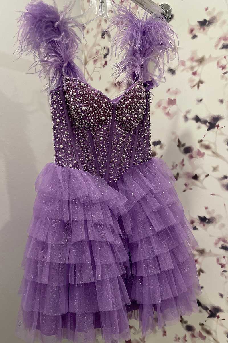 Glitter Cold Shoulder Black Beaded Ruffle Short Homecoming Dress