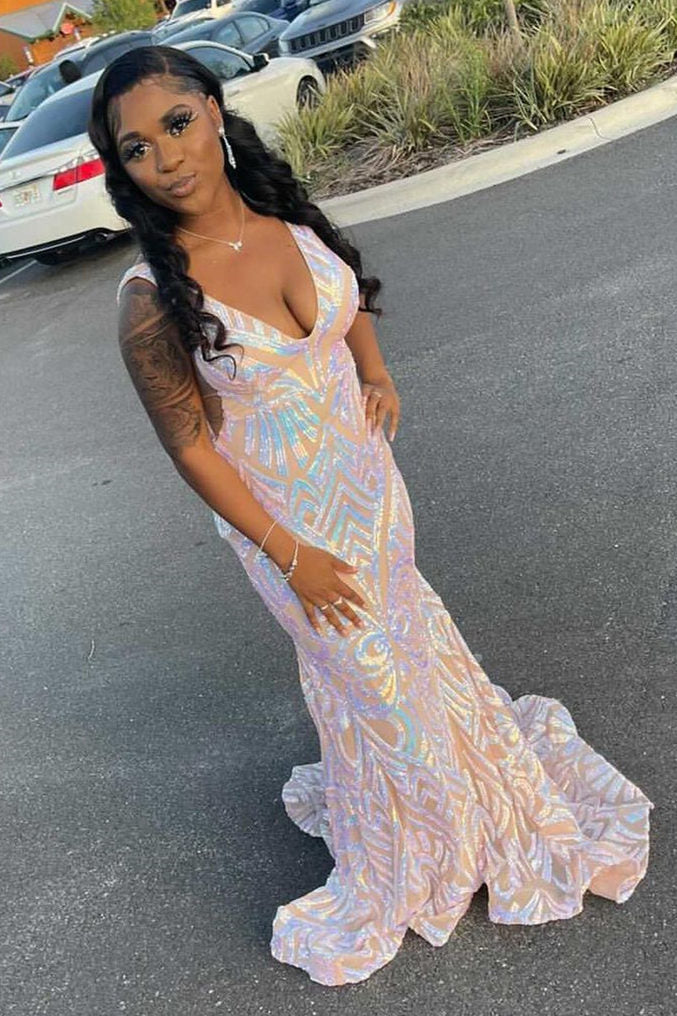 Glitter Mermaid v-Neck Sequined Long Prom Dress
