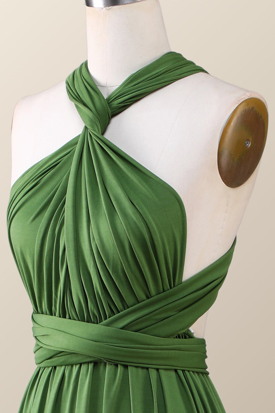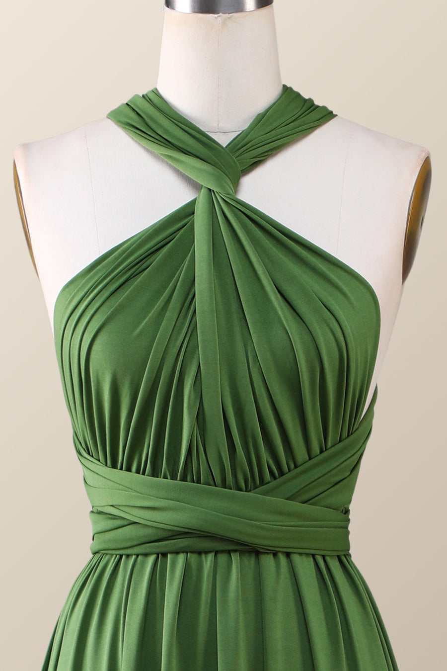 Green A-line Pleated Long Convertible Bridesmaid Dress