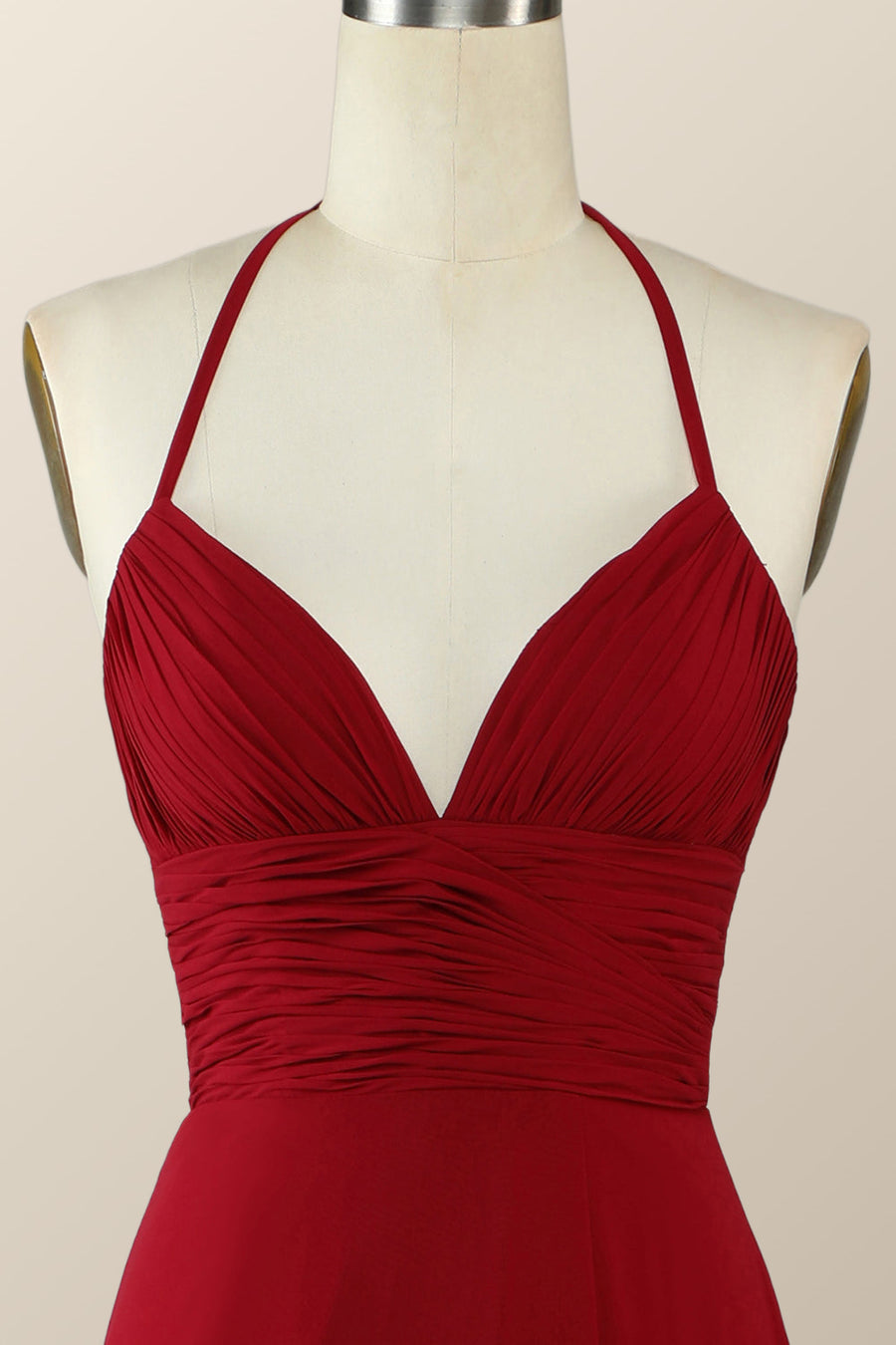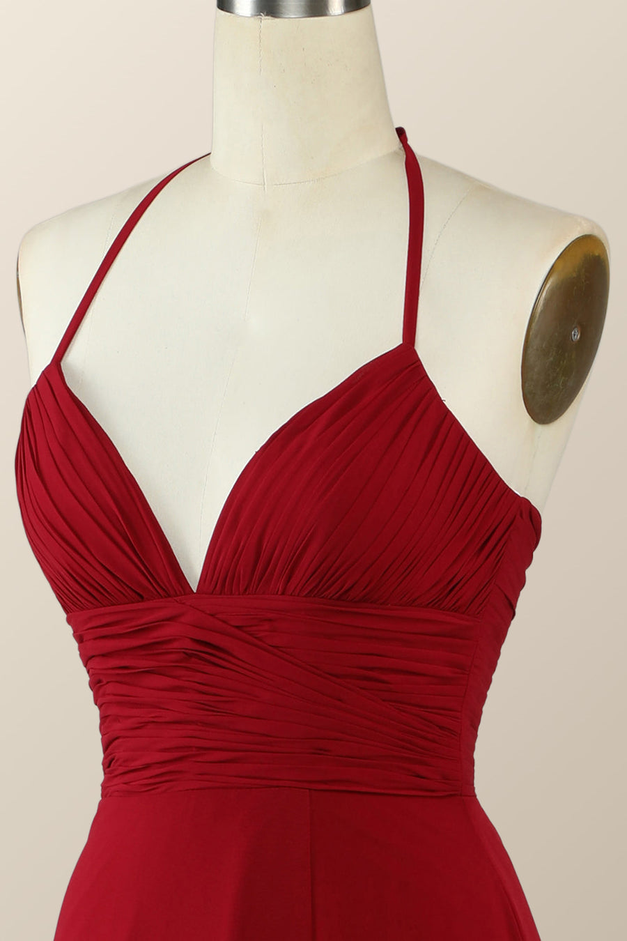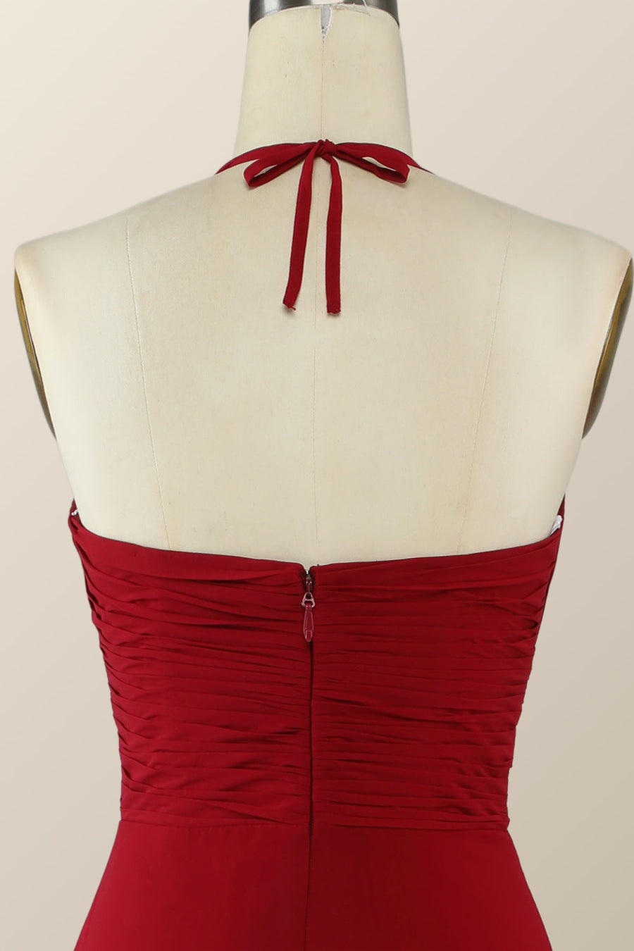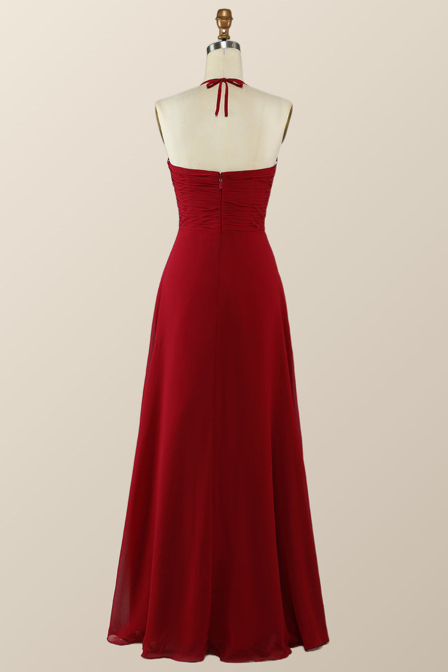 Halter Red Pleared Long Bridesmaid Dress with Slit