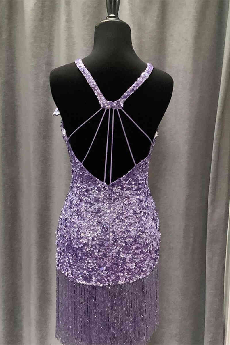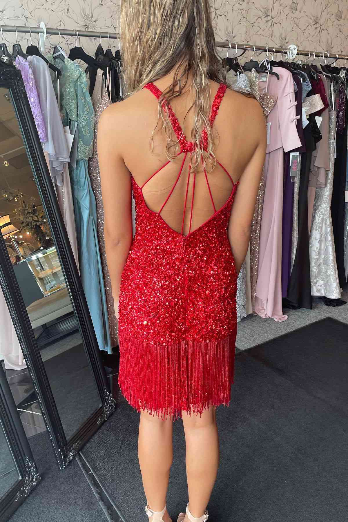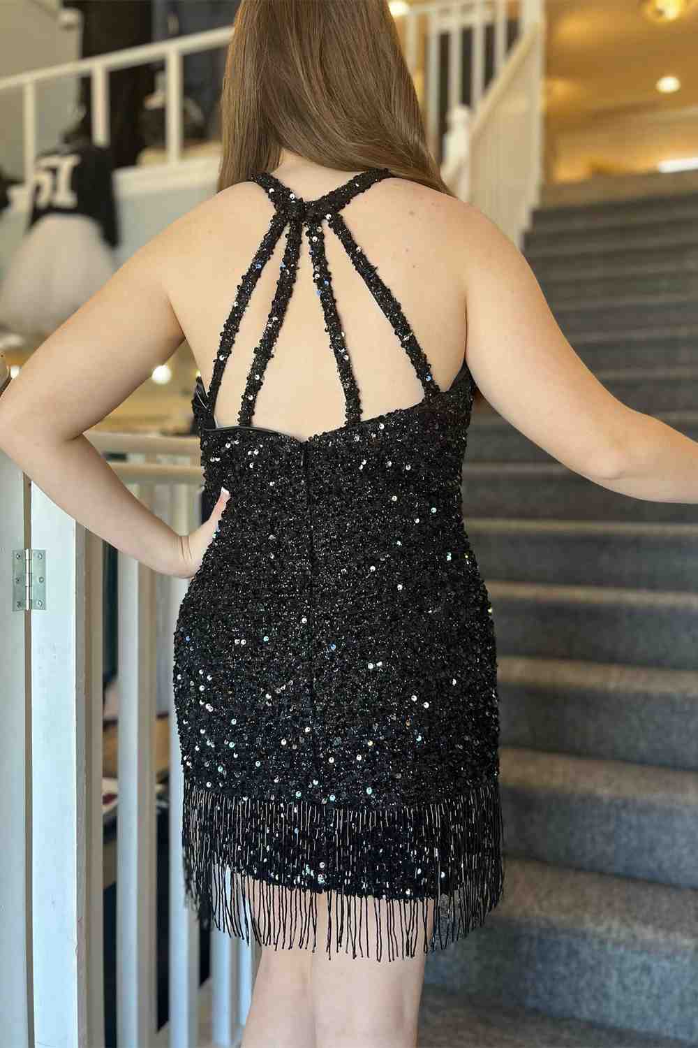 Hot Pink Halter Tight Homecoming Dress with Tassel