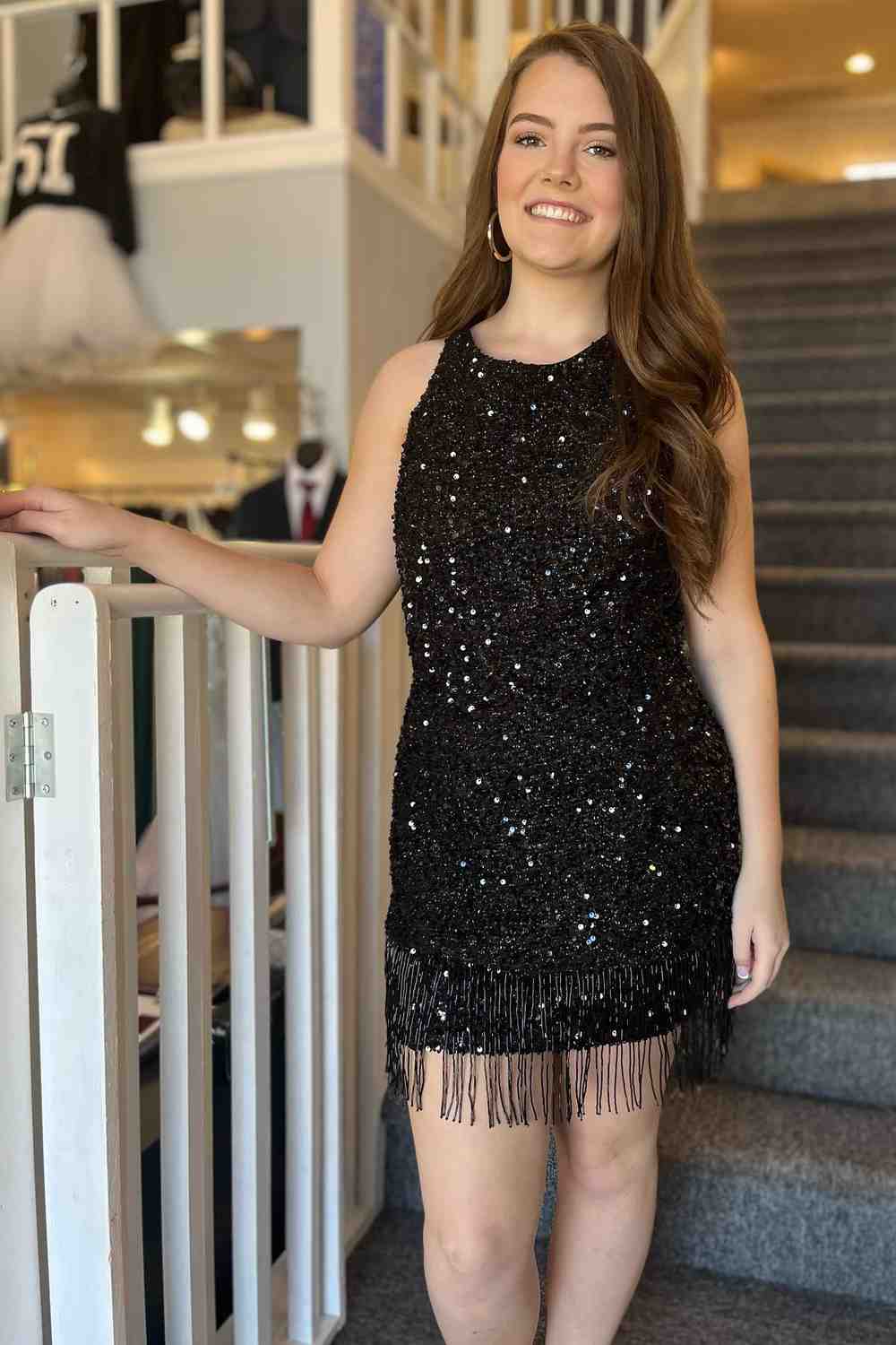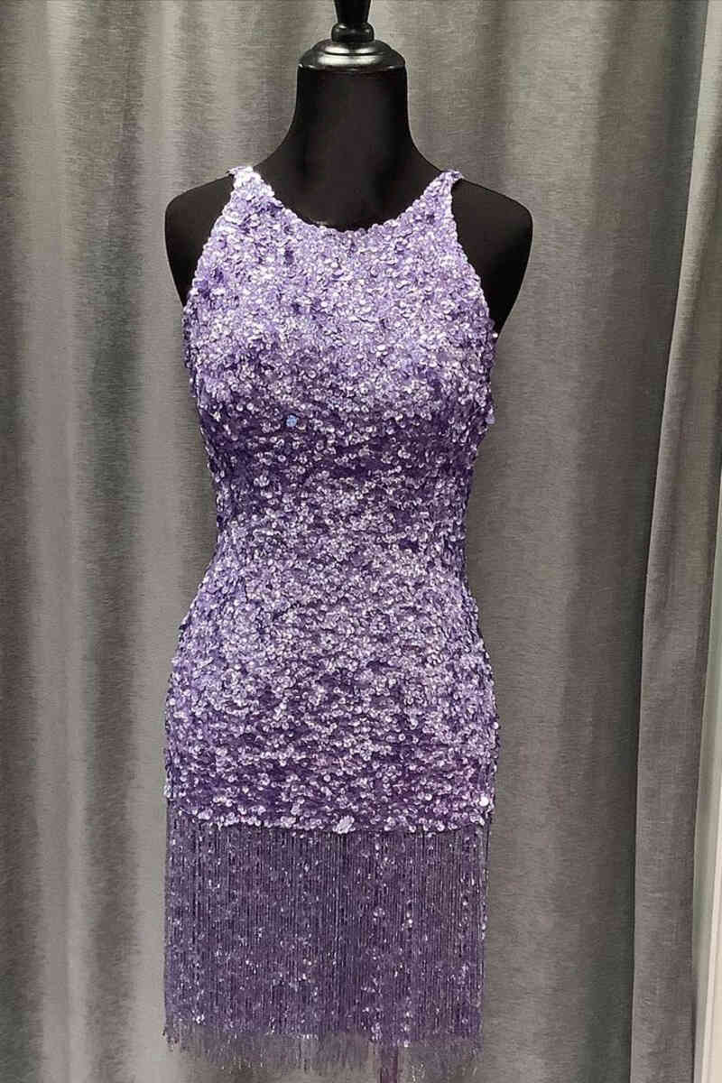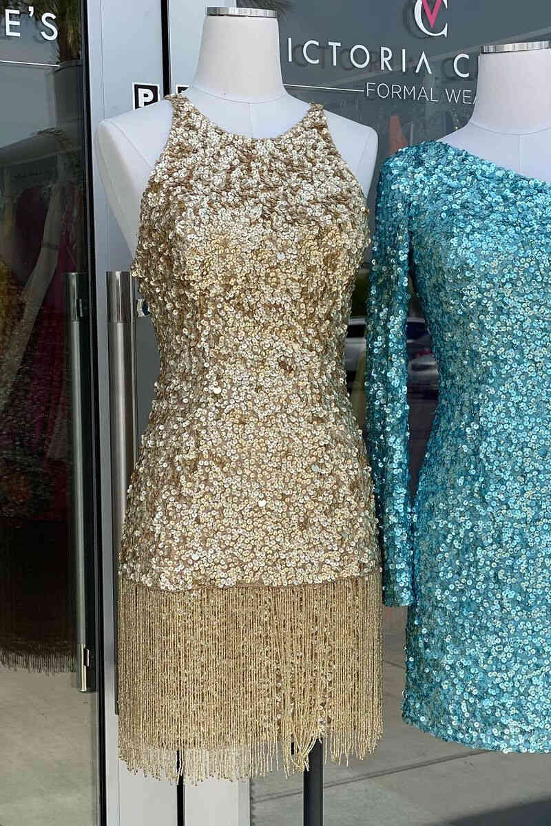 Hot Pink Halter Tight Homecoming Dress with Tassel