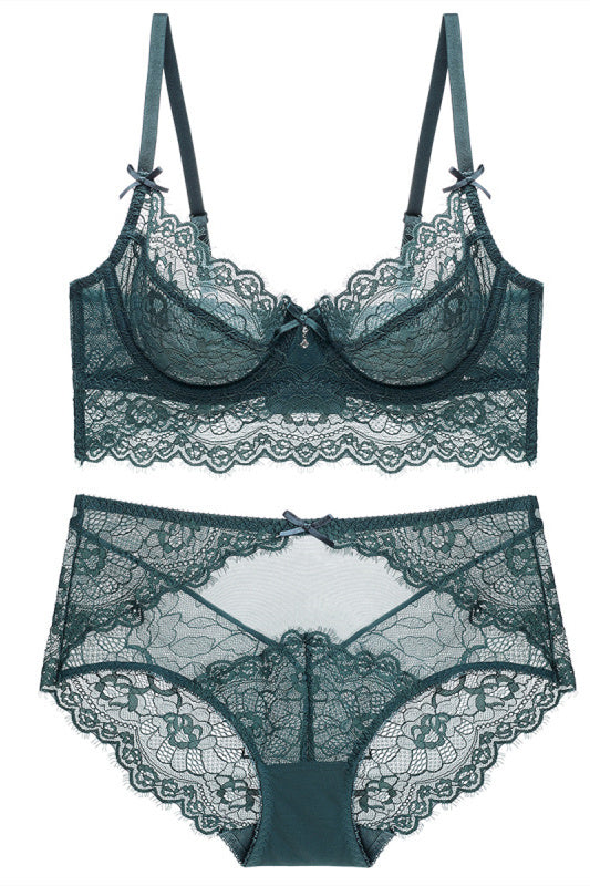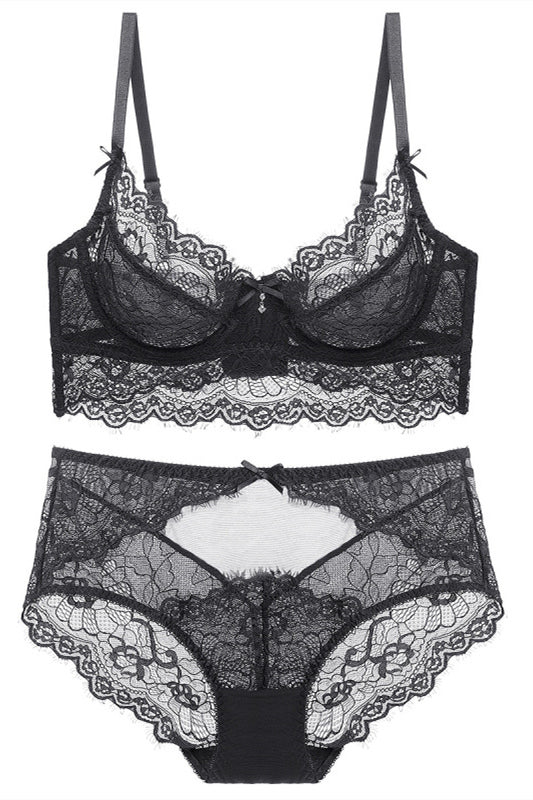 Free Shipping Illusion Light Grey Lace Lingerie Set