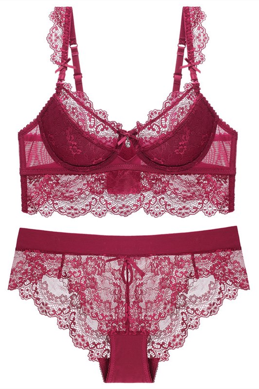 Free Shipping Burgundy Lace Lingerie Set