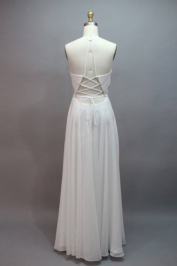 Lace-Up Plunging Neck Burgundy Long Bridesmaid Dress
