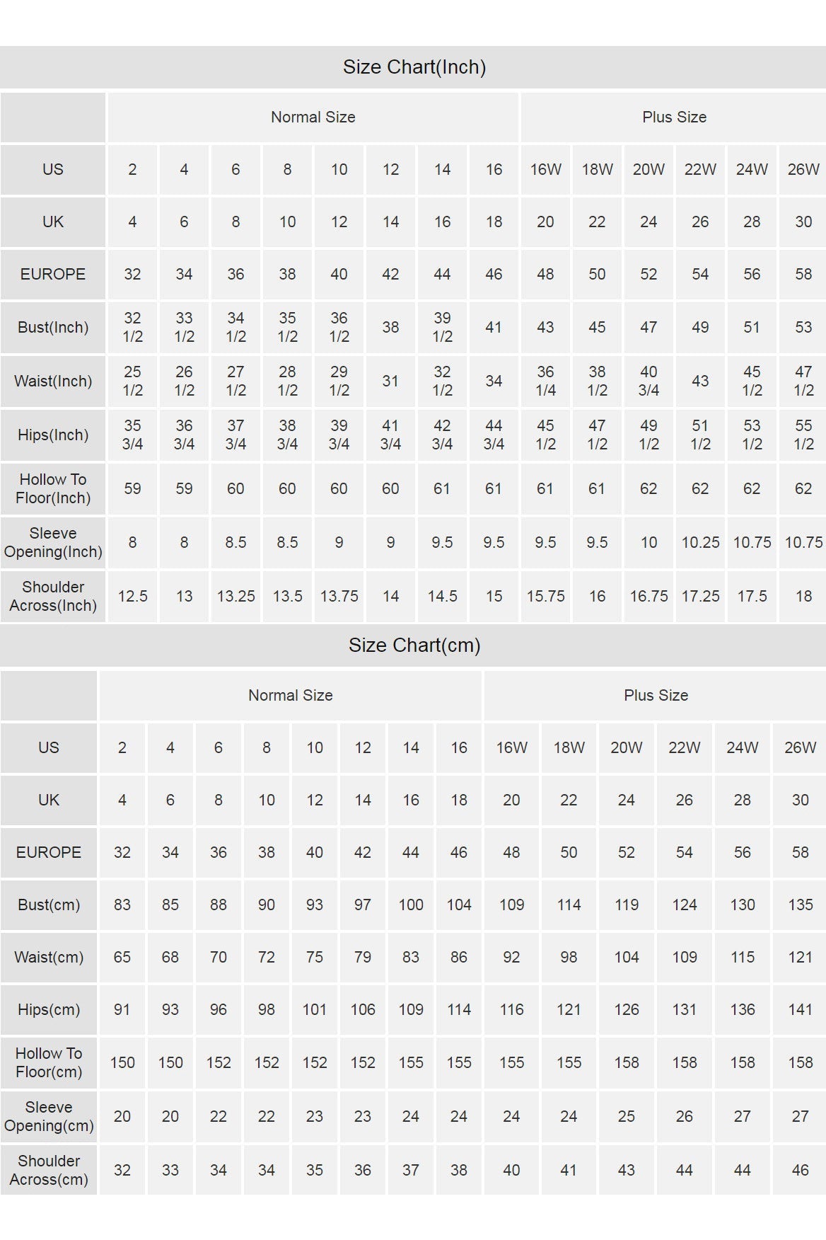 Hollow to Floor___inch/cm (for the long dress)