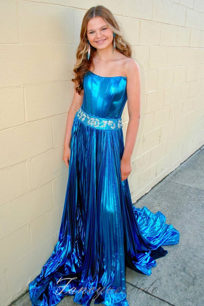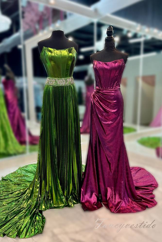Upgrade your prom look with our Metallic Gold Strapless Beaded Prom Dresses with Slit. Experience the perfect blend of elegance and glamour in this dress, featuring intricate gold beading and a daring slit. Make a statement and turn heads with this stunning and unique prom dress.