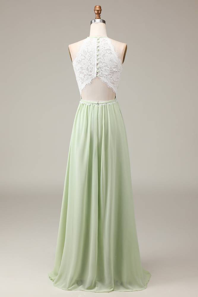 Mint Green Lace Top A-Line Maxi Dress