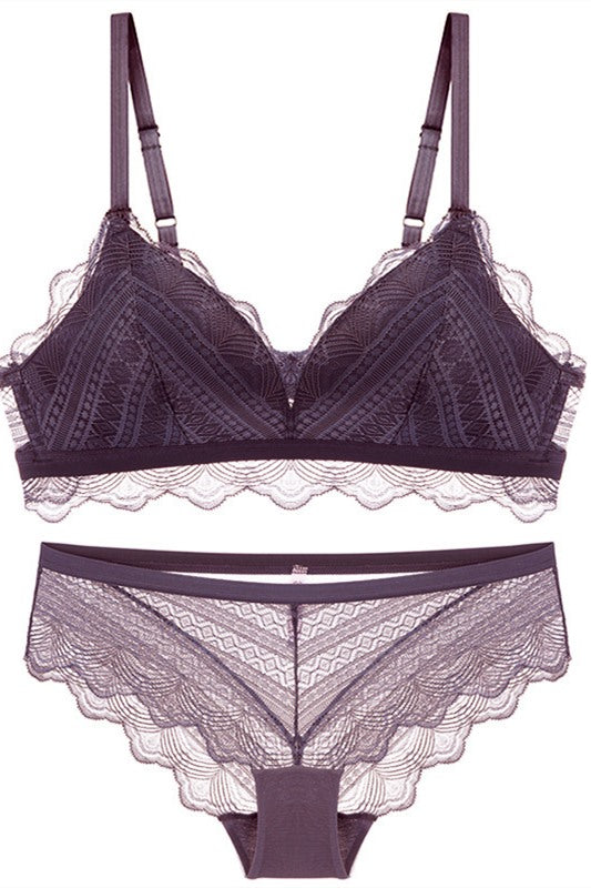 Free Shipping Triangle Navy Blue Lace Lingerie Set