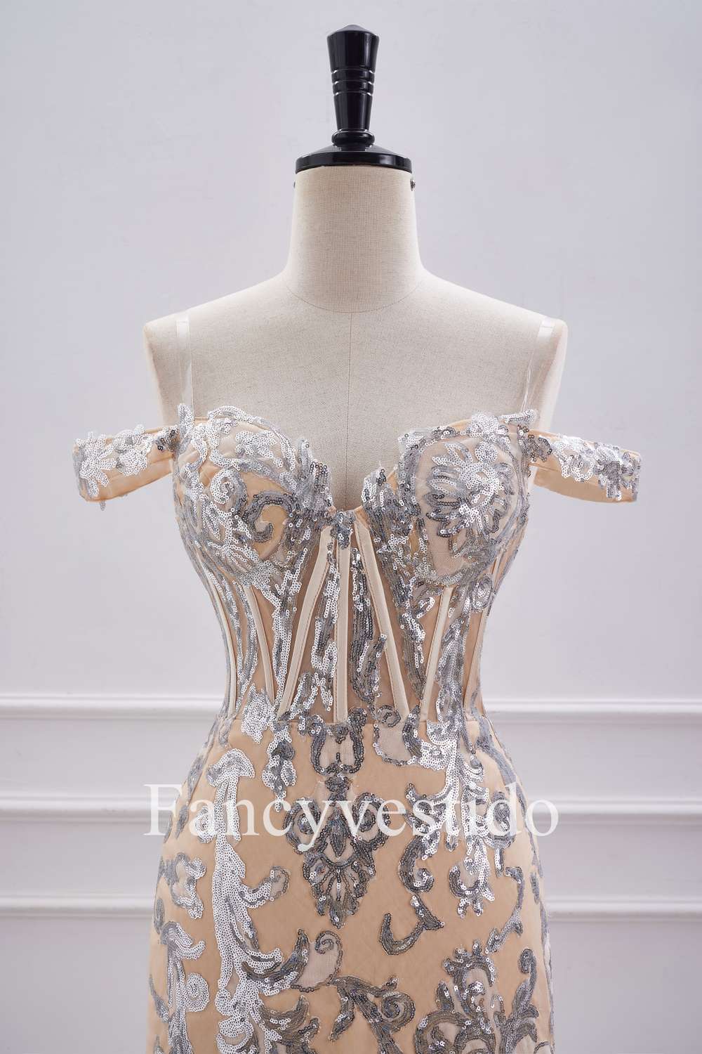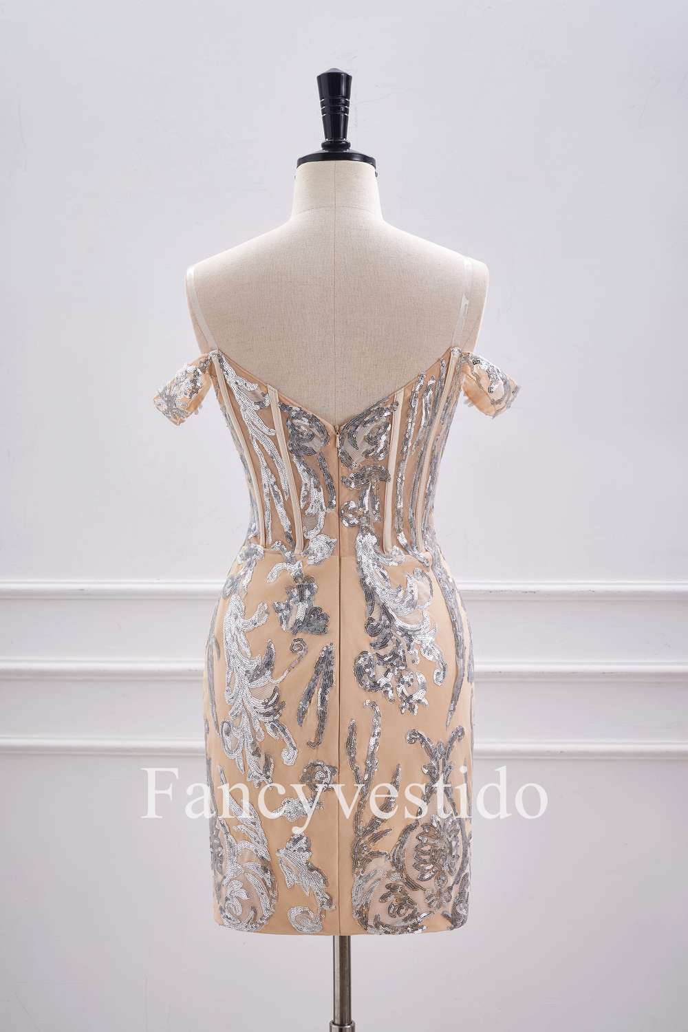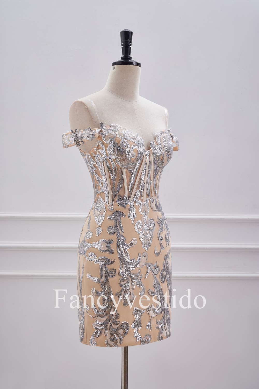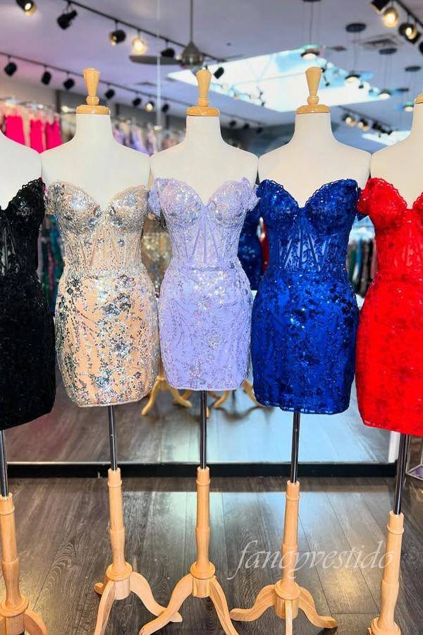 Off the Shoulder Nude Corset Tight Homecoming Dress with Silver Sequin