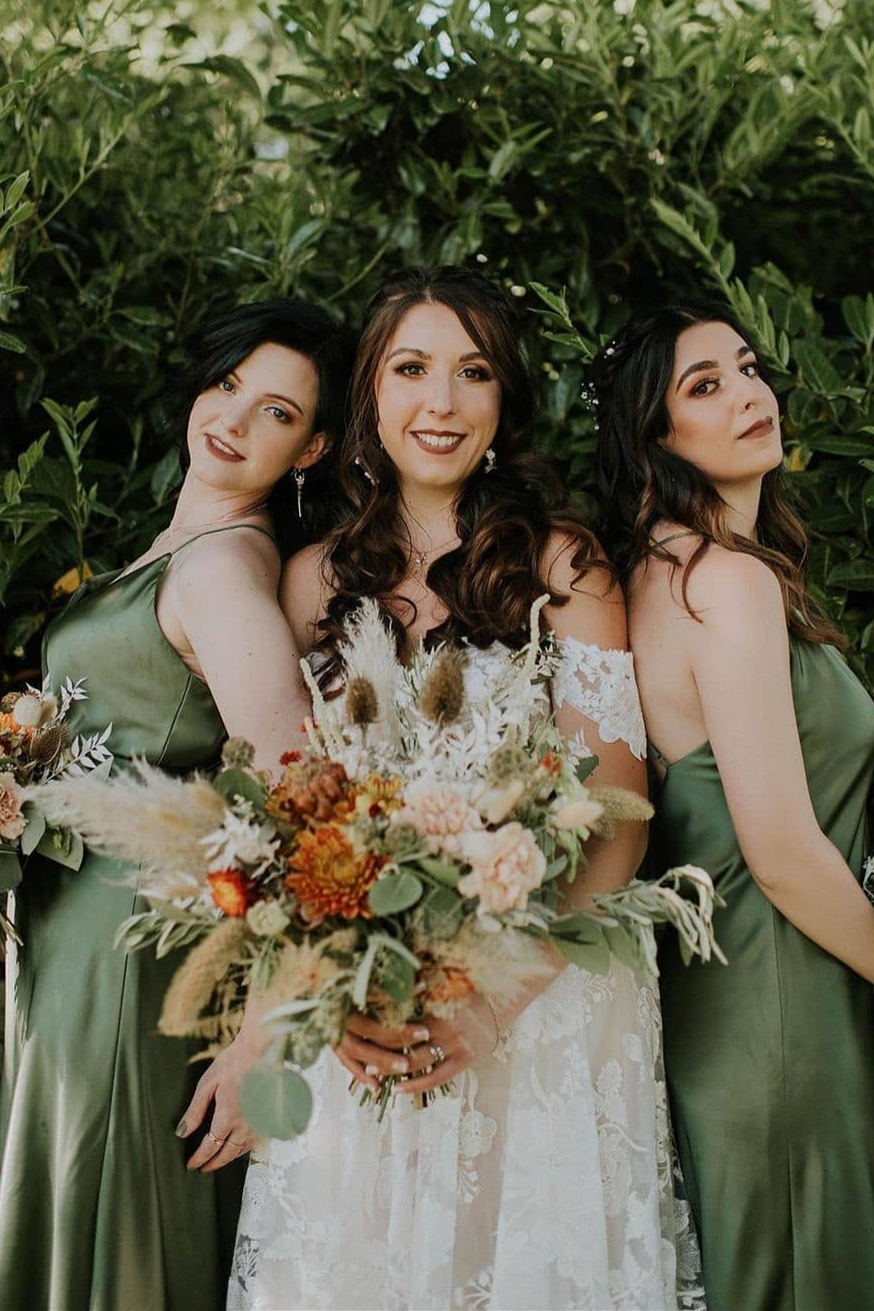 Elegant olive green long bridesmaid dress features with v-neck, floor length and criss cross straps.
