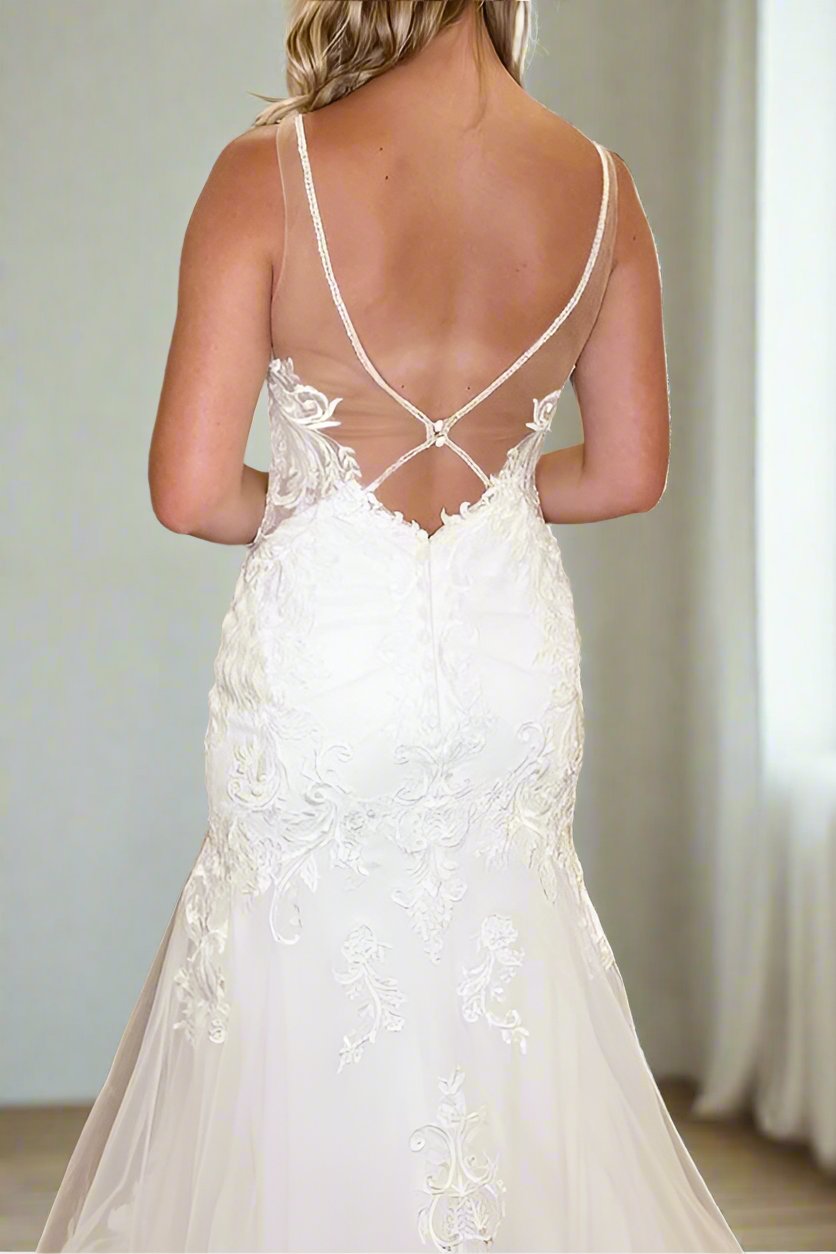 Plunging Neck Applique Mermaid Wedding Dress with Illusion Neck