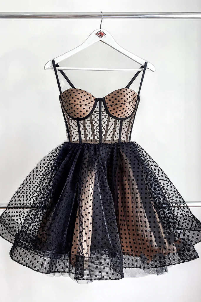 Spaghetti Straps Cowl Neck Tea-Length Champagne Bridesmaid Dress
