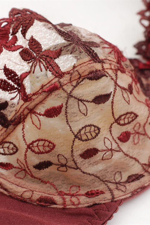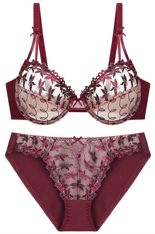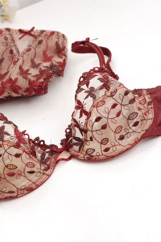 Free Shipping Sexy Embroidered Red Lingerie Set