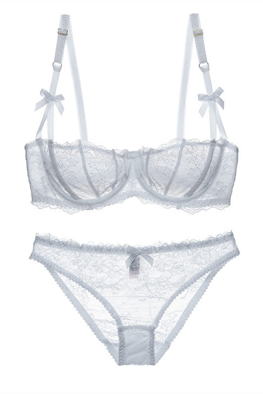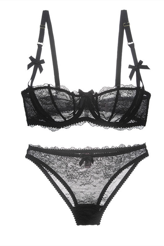 Free Shipping Sexy Illusion Pearl Pink Lace Lingerie Set