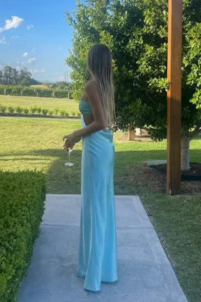 Sexy Straps Aqua Cutout Maxi Dress with Open Back