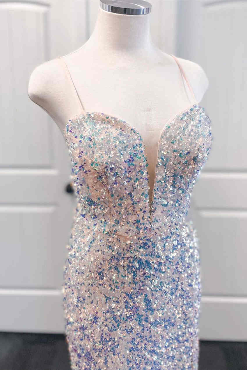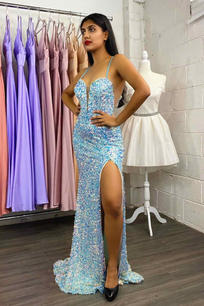 This elegant mermaid long prom dress features spaghetti straps and sequins. Our dresses have a good quality, but Inexpensive.