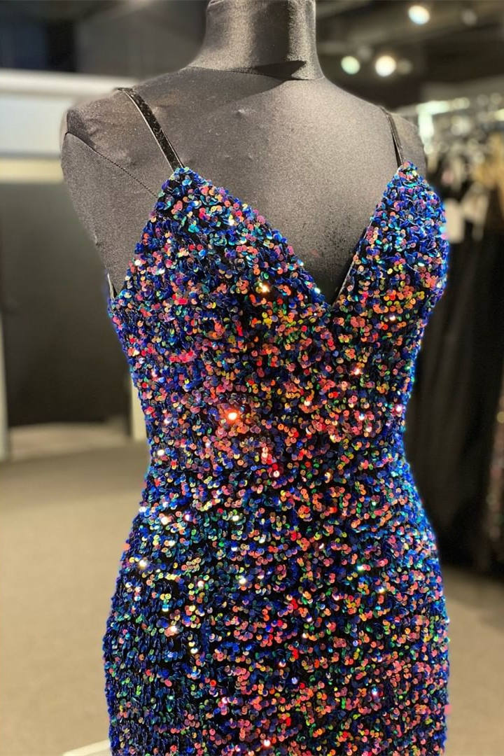 Spaghetti Straps Mermaid Sequins Long Prom Dress