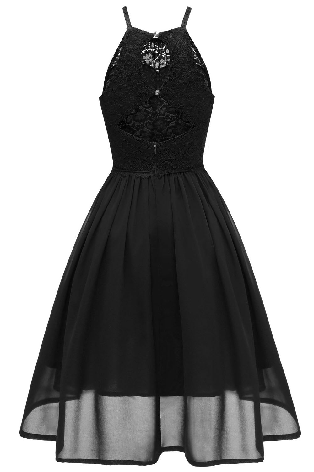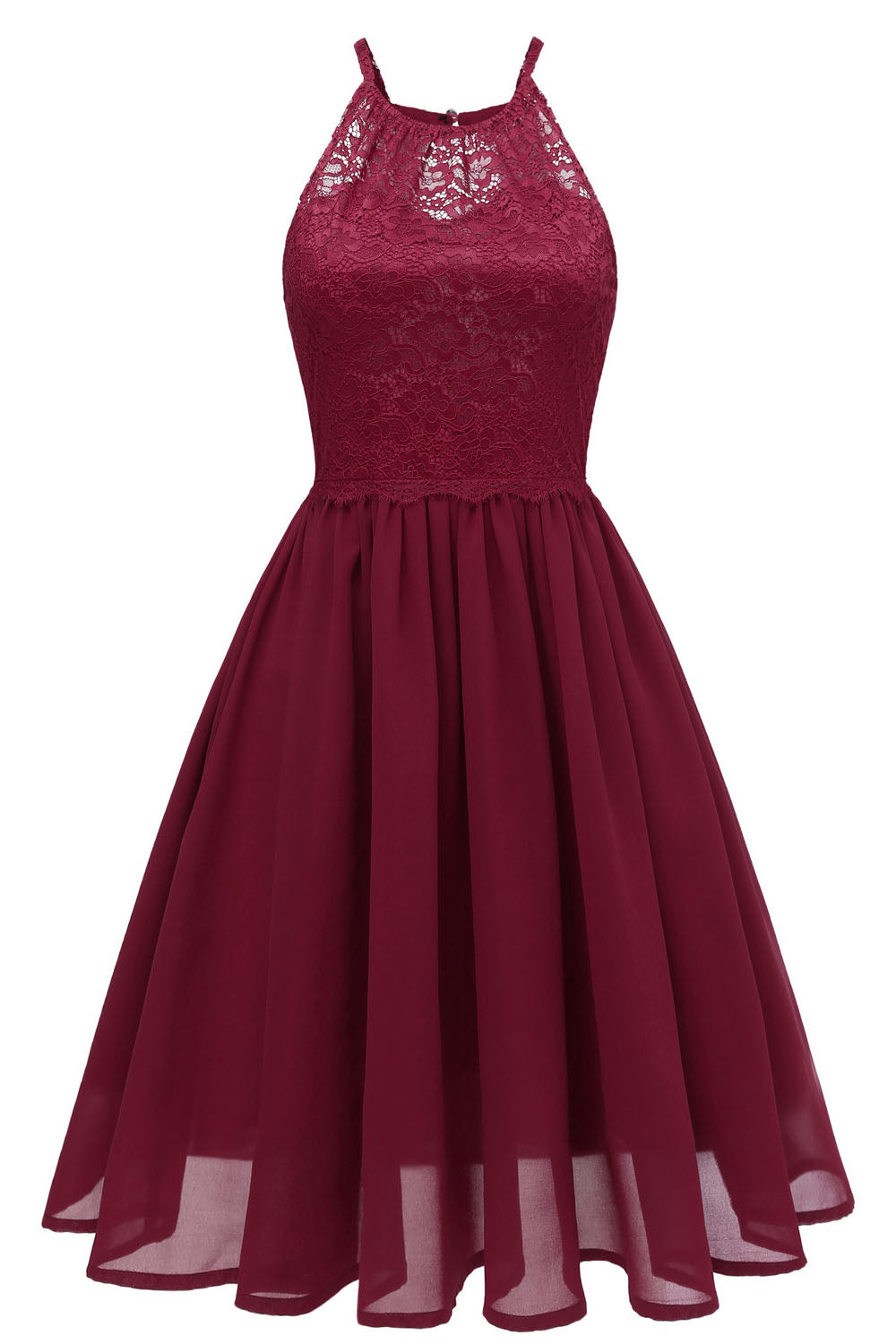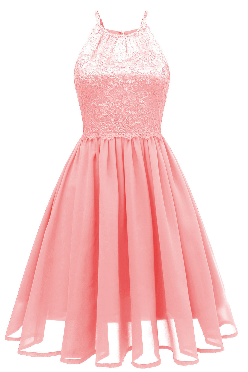 Spaghetti Straps Cowl Neck Tea-Length Champagne Bridesmaid Dress