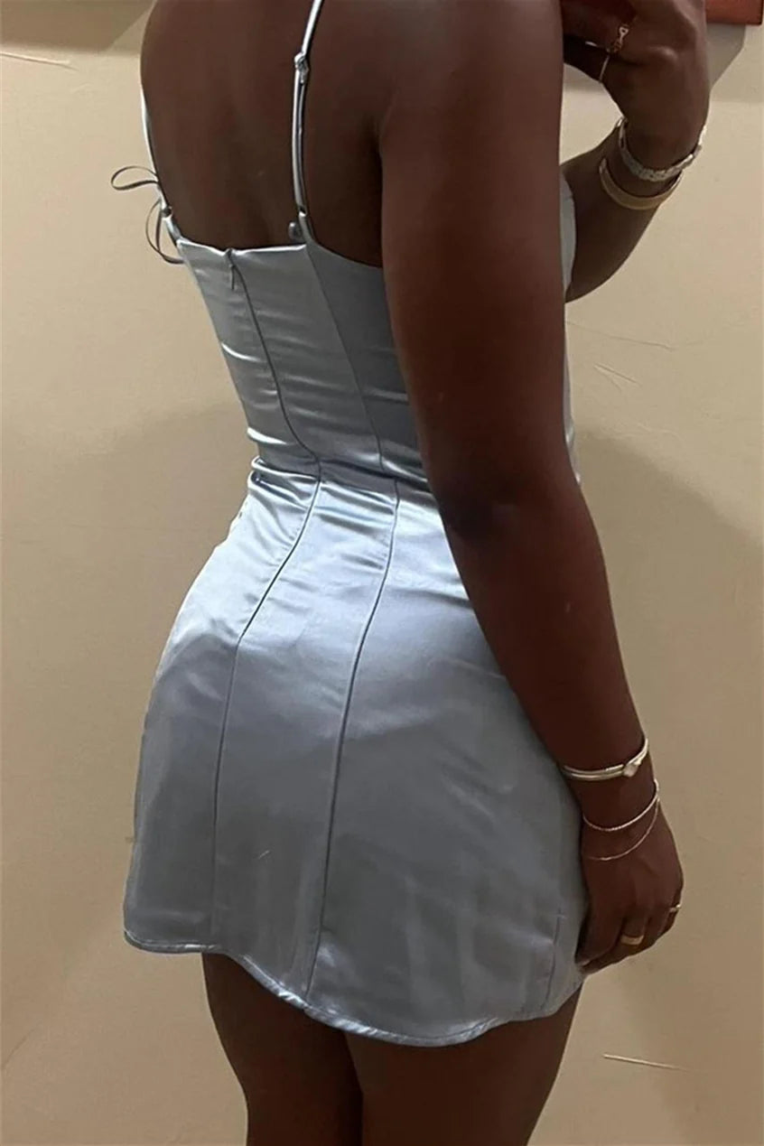 Spaghetti Straps Tight Short Homecoming Dress with Floral