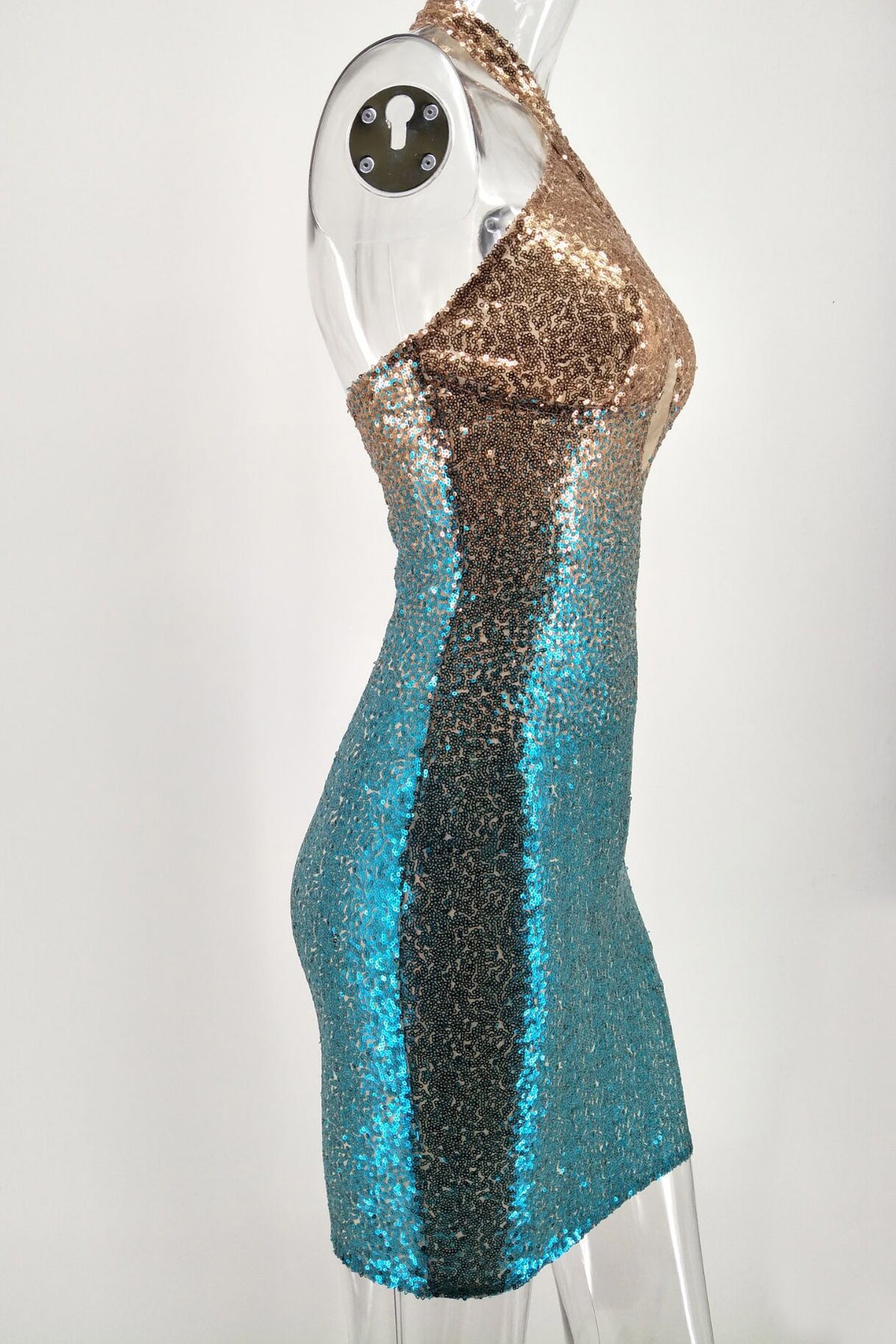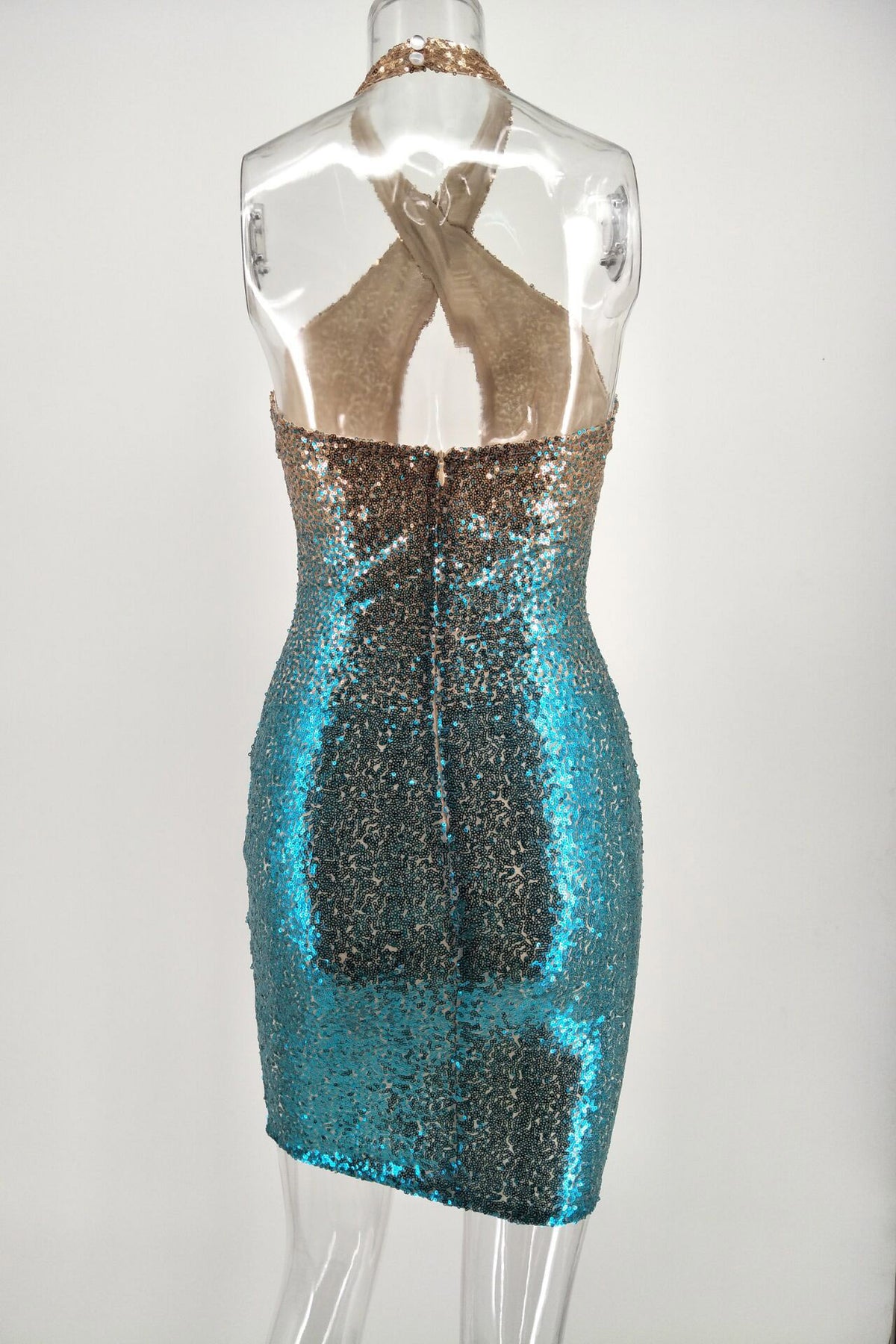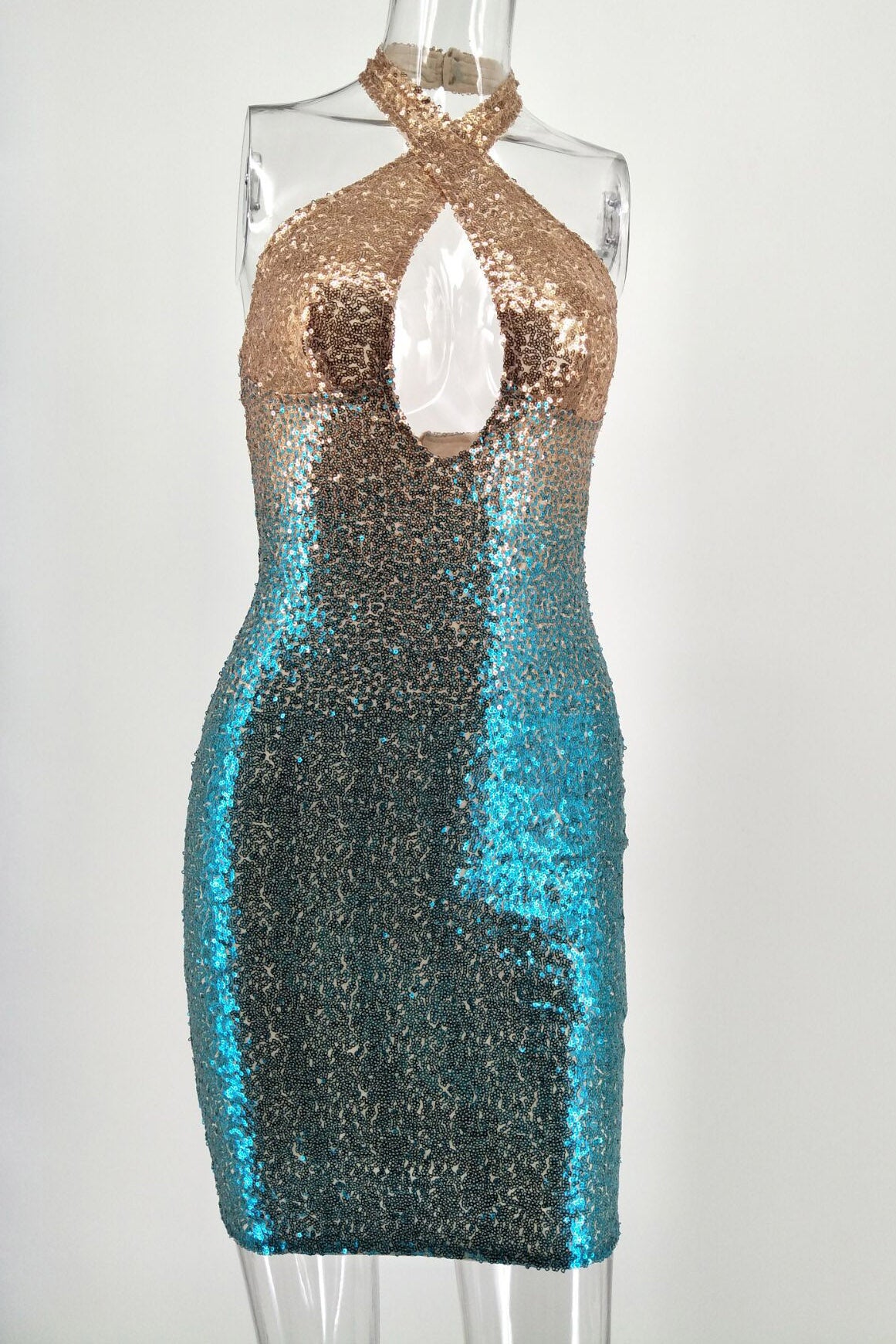 Sparkly Halter Keyhole Sheath Sequins Party Dress