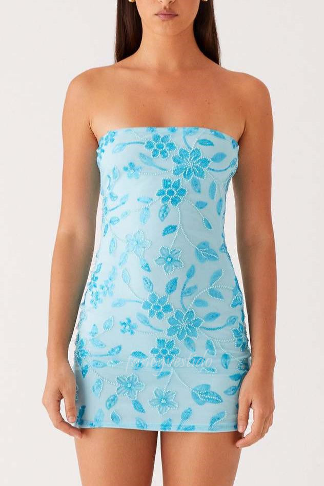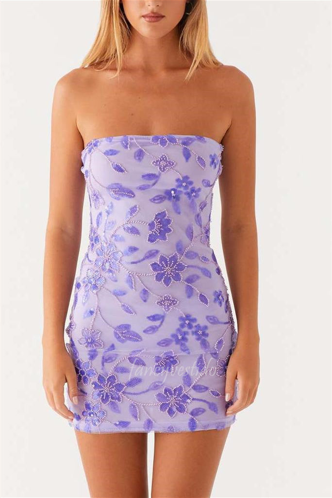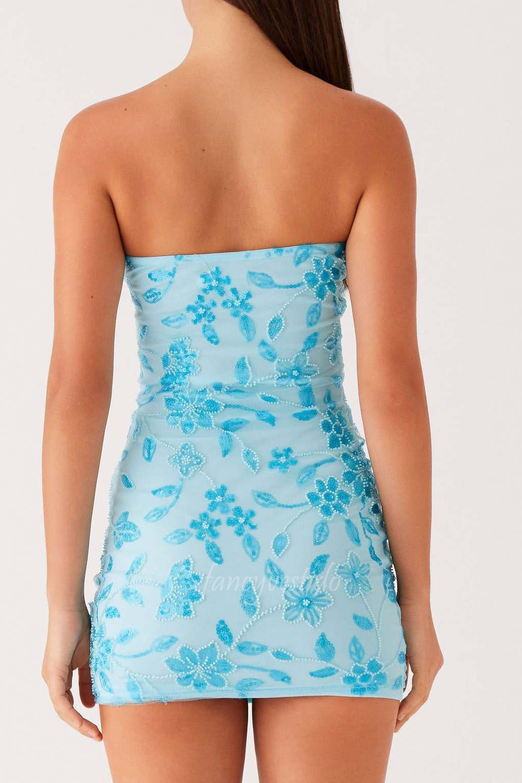 Strapless Blue Applique Homecoming Dress Summer Dress