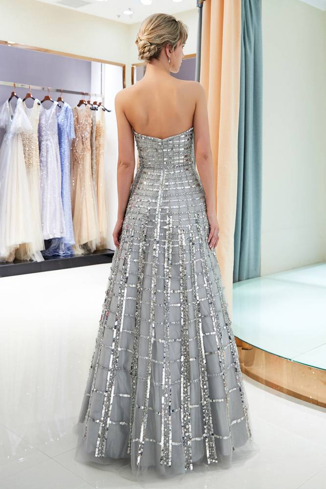Strapless Floor Length Sliver Prom Dress with Sequins