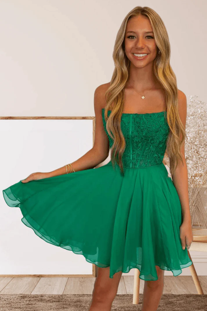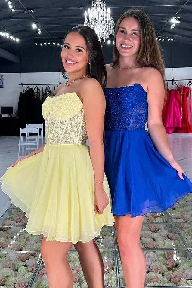 Strapless Hot Pink Applique Homecoming Dress