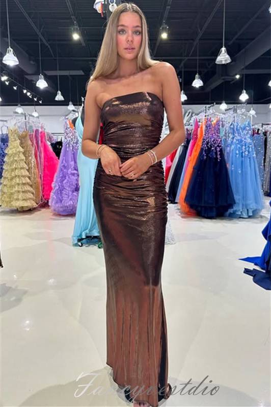 Strapless Metallic Green Sheath Long Prom Dress